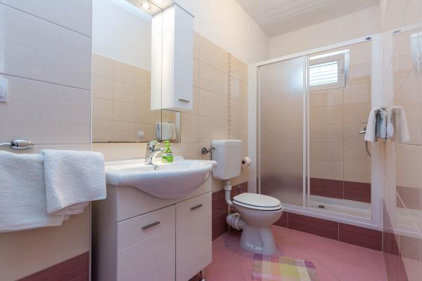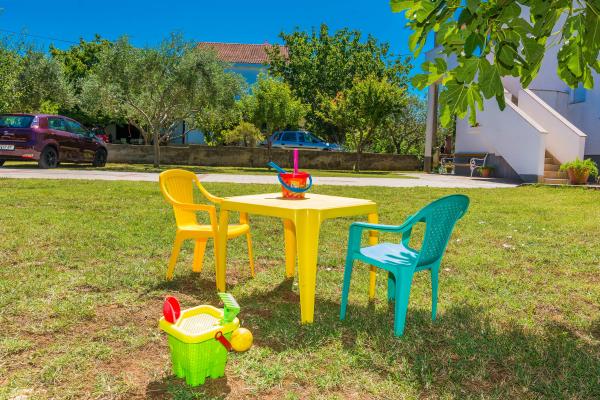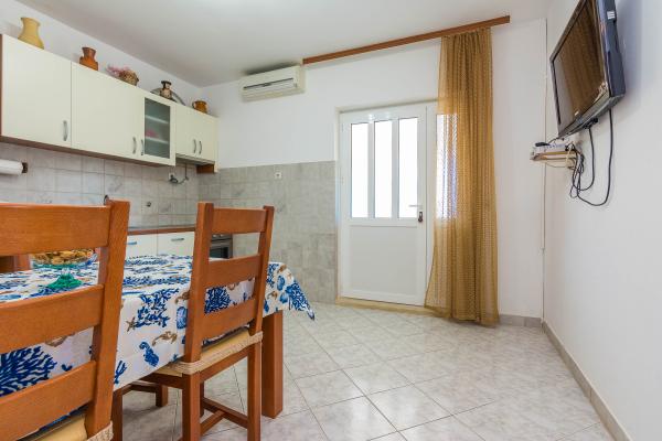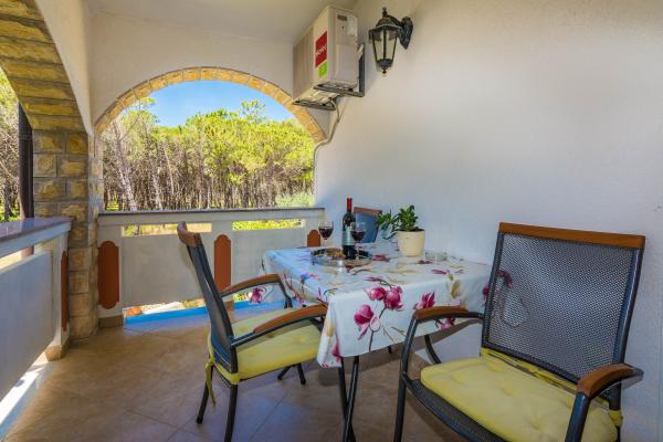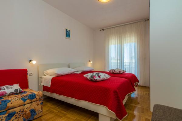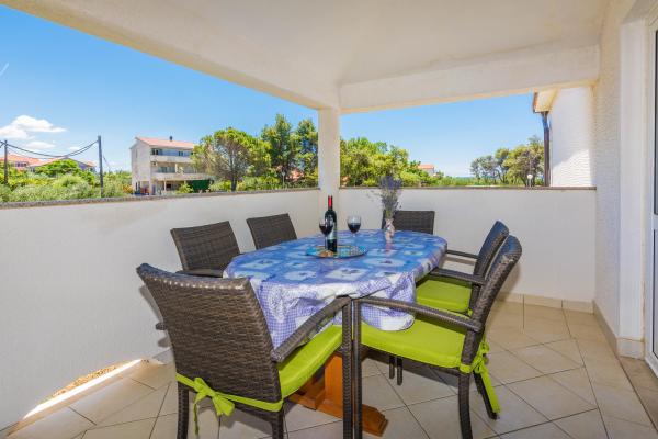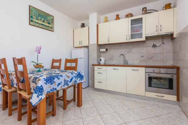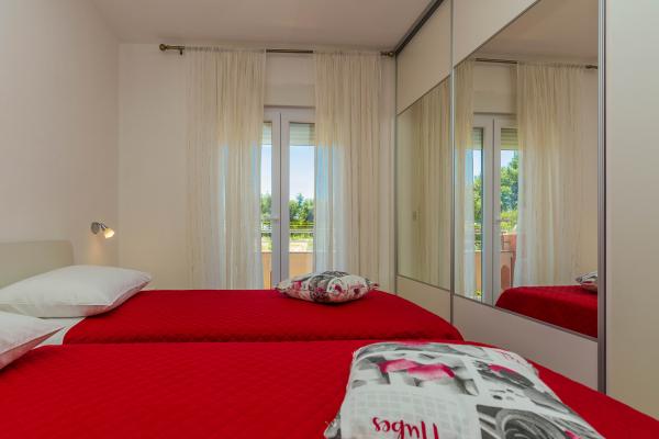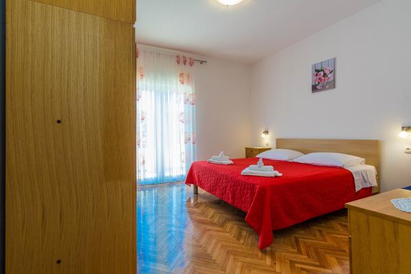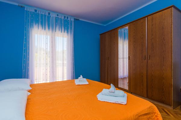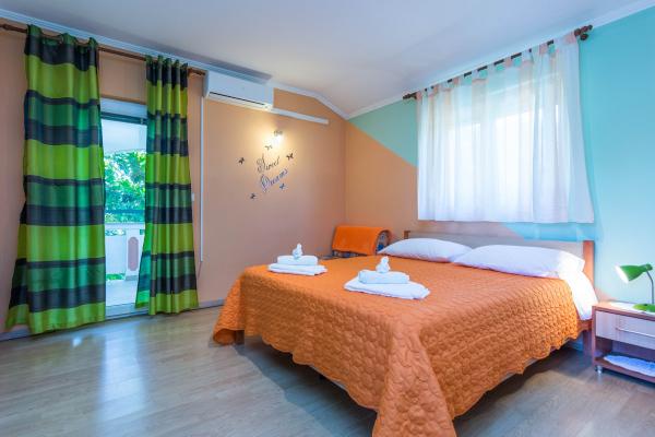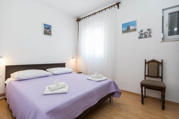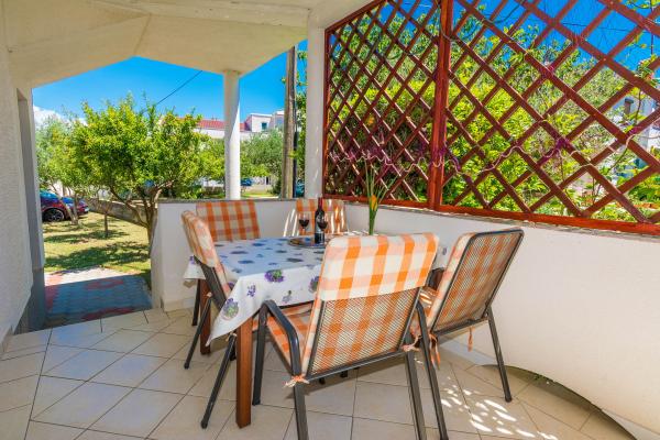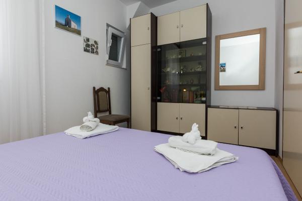Kompletno opremljeni apartmani u mirnom predjelu Privlake, smješteni 300 m od mora, sa velikim dvorištem. Apartmani su sa dvije velike spavaće sobe, kupatilom, kuhinjom ,velikom tarasom i balkonom. Ispred kuće je borova šuma, blizu je autobusna stanica.