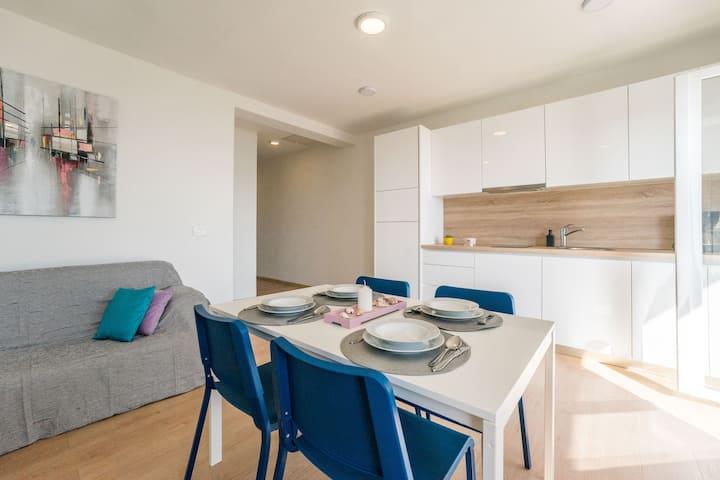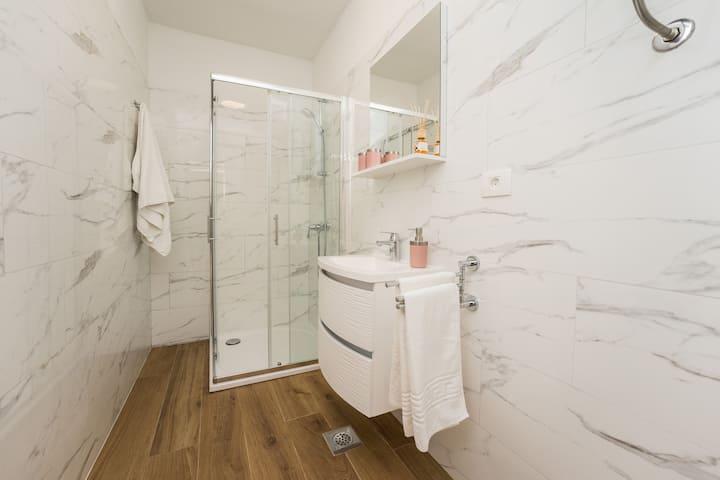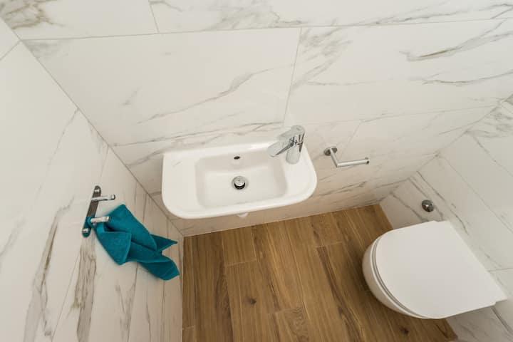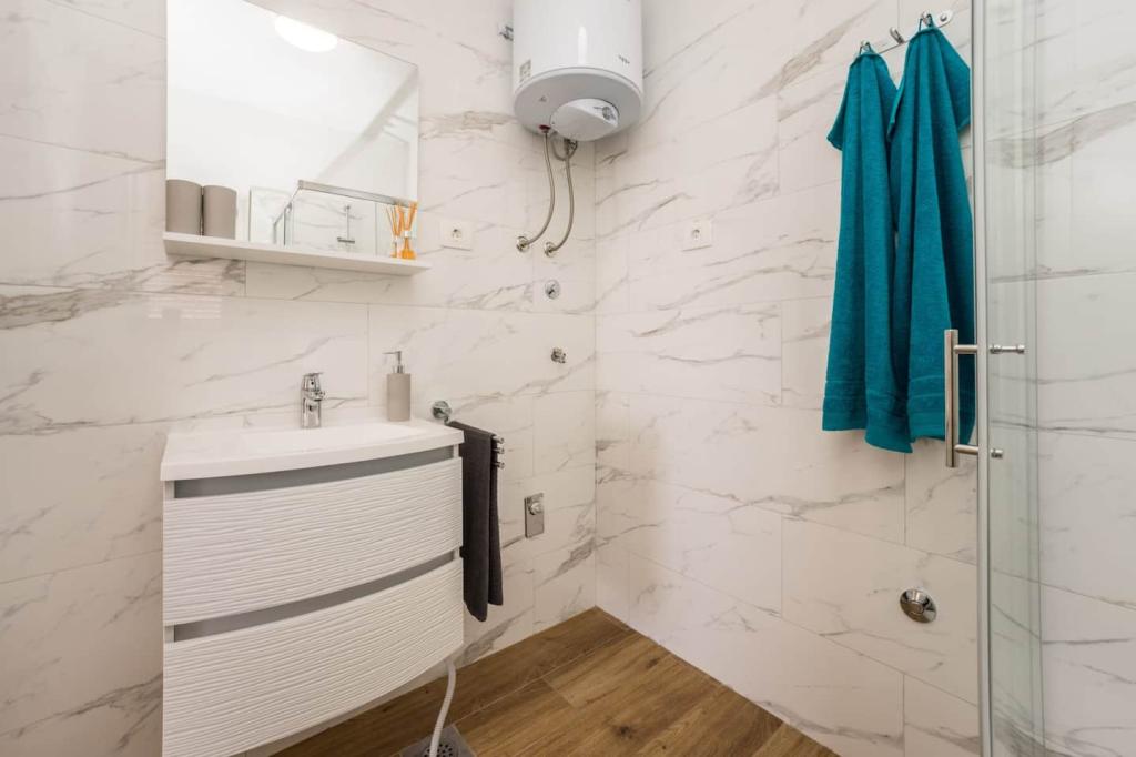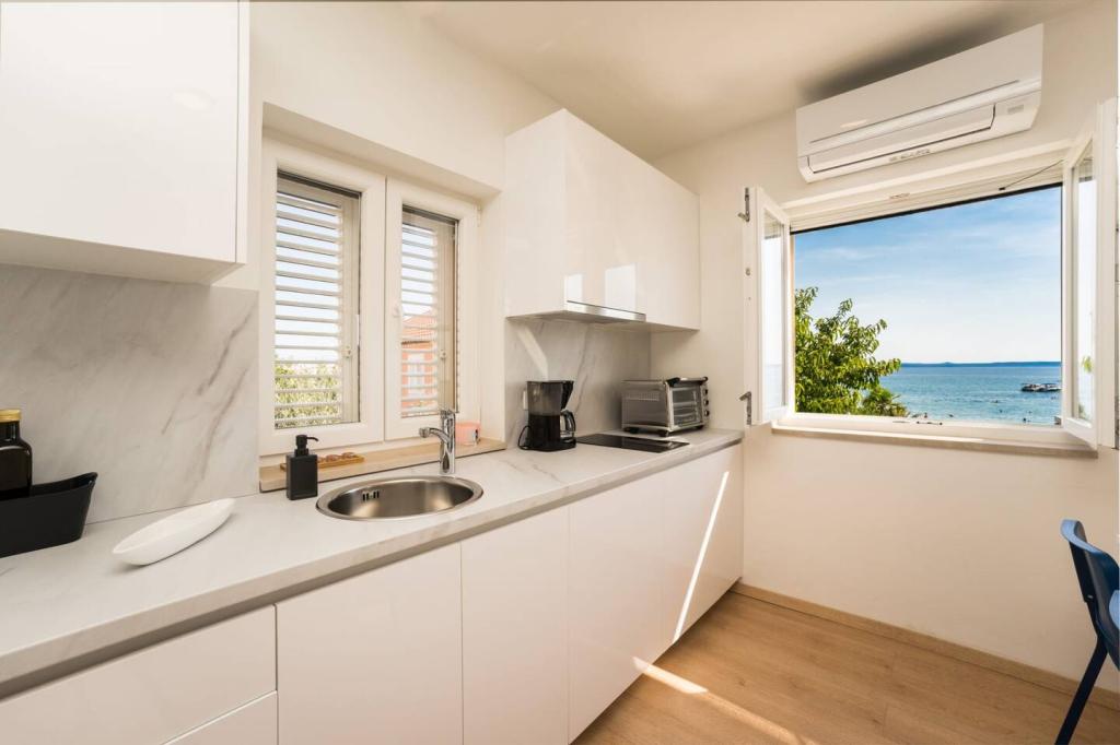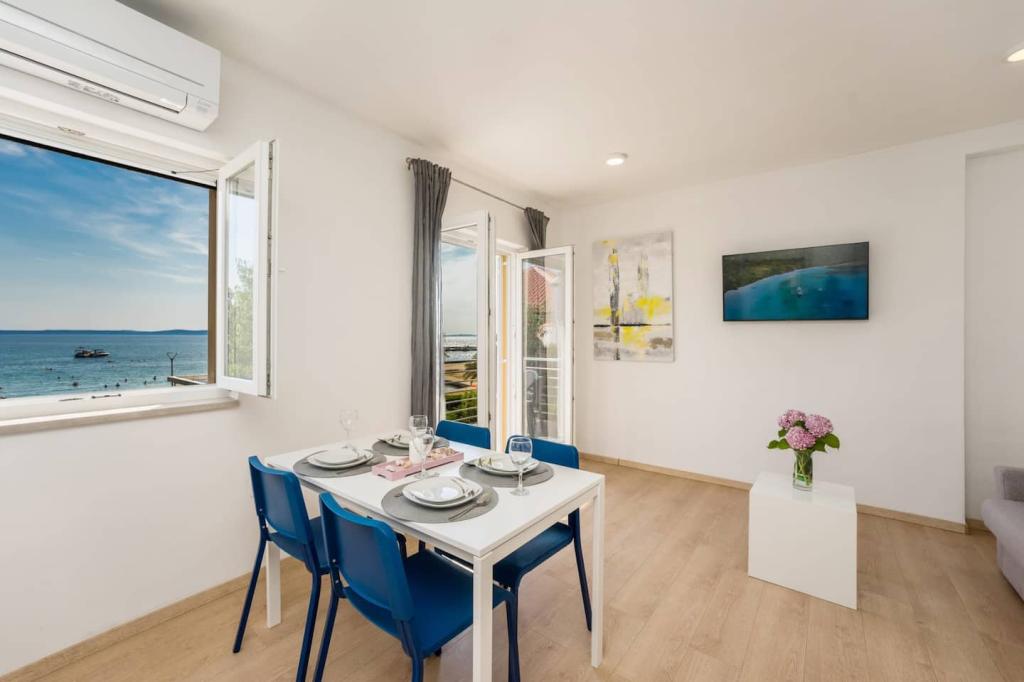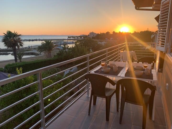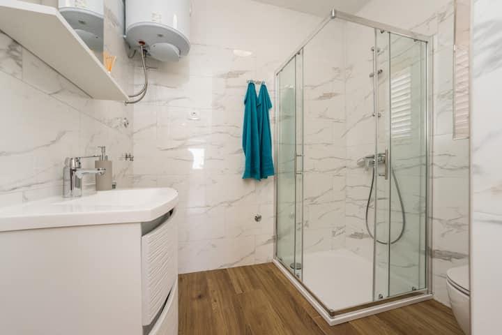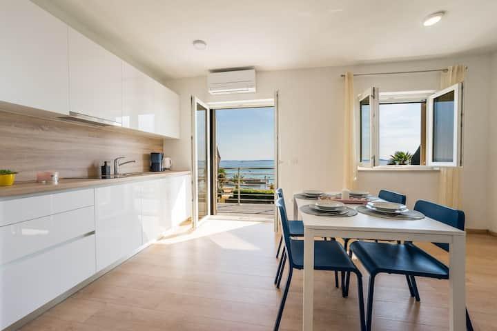 Novi i moderni apartmani u kući u neposrednoj blizini mora, sa prekrasnim pogledom na more. Pješčana plaža je u blizini, a možete se kupati i ispred kuće. Na raspolaganju je besplatan Wi-Fi, klima uređaji su u 2 sobe, a parking je dostupan iza ili ispred kuće. U blizini se nalaze trgovine, kafići i restorani. Svaki apartman ima 1 spavaću sobu i kauč u dnevnoj sobi. Dnevni boravak je povezan sa kuhinjom. Ima kupaonicu i odvojeni WC. Tu je lijepa terasa s izvanrednim pogledom na more i malim stolom gdje možete uživati u doručku ujutro ili u večeri uz zalazak sunca. Uživajte u svom opuštajućem odmoru u ovim lijepim apartmanima.
