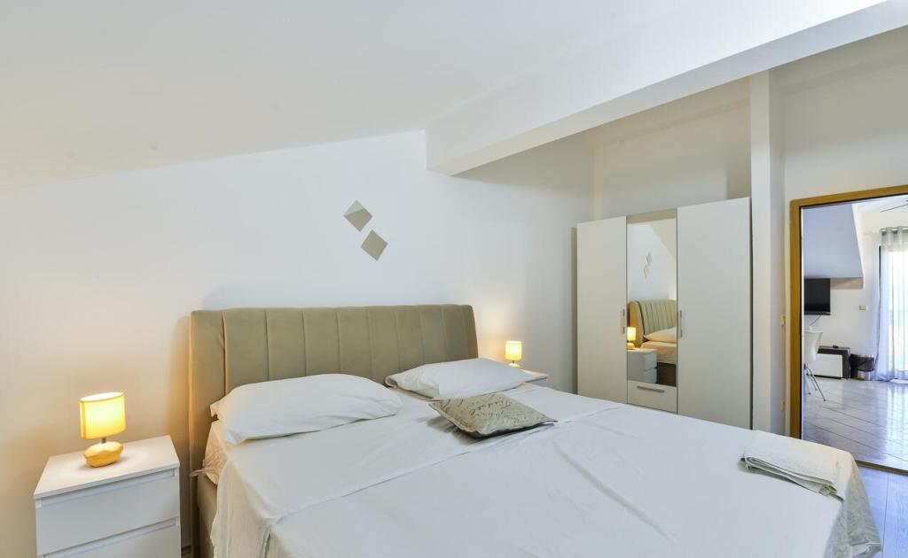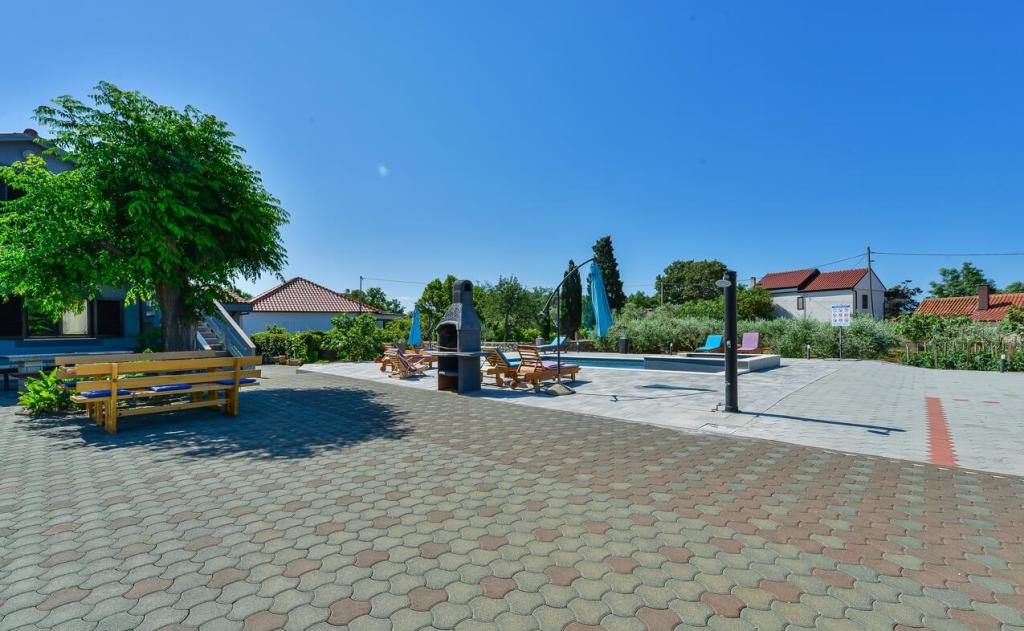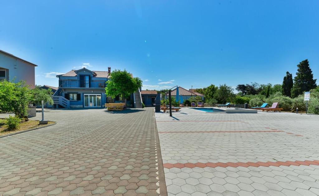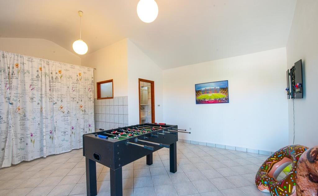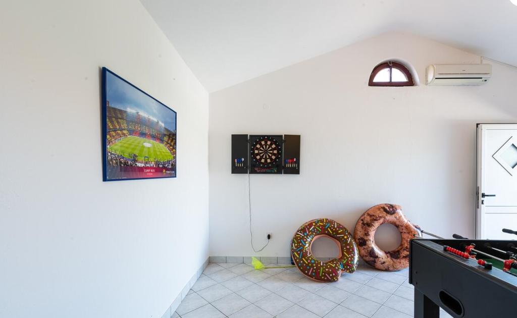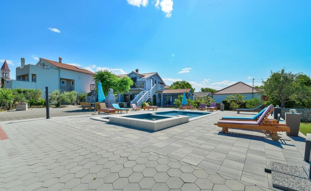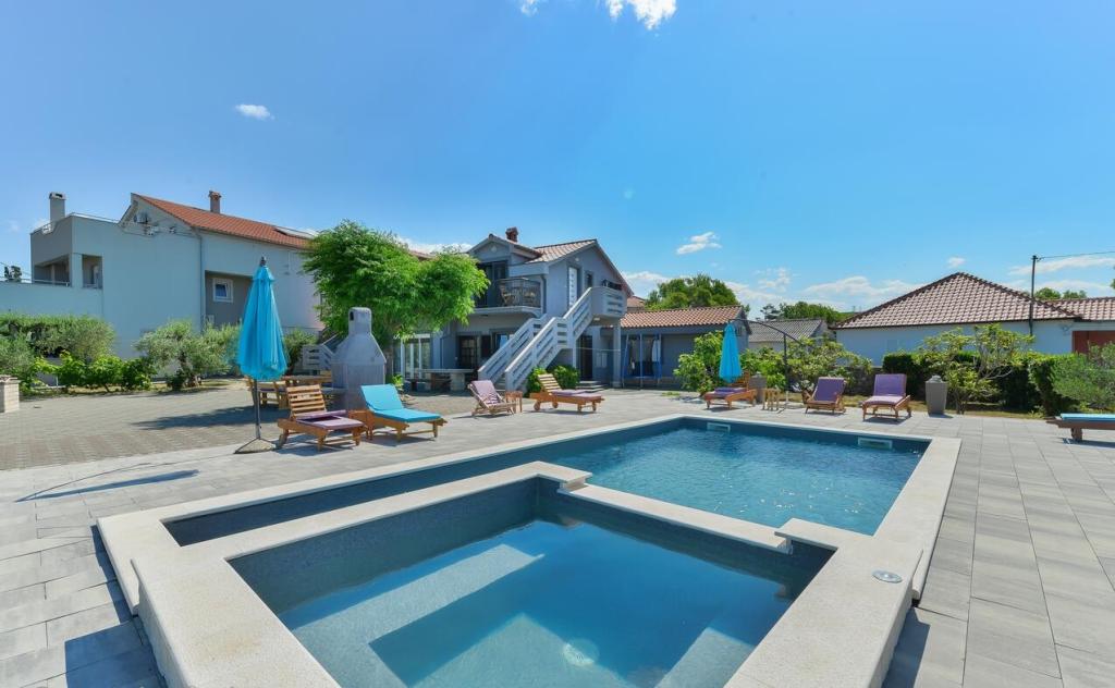 Apartmani se nalaze 300 m od mora. Nalaze se u mirnom mjestu, u okruzenju maslina, bazen, jacuzzi, grill, igraonica s pikadom i stolnim nogometom. Veliko dvoriste, ogradeno....