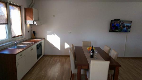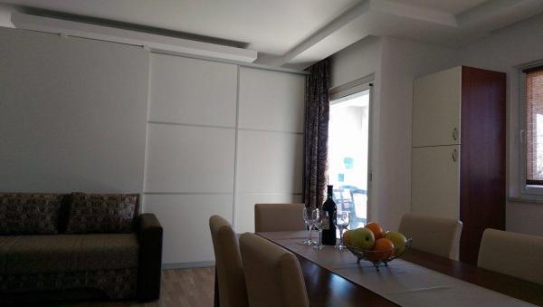 Imali smo iznajmiti dva apartmana, dva velika. Prvi je bio na 1. katu i bio je u dobrom stanju, obnovljen prije otprilike četiri godine. Mislim da je kuhinja malo premalena da kuhamo za pet. Samo dvije štednjake. Balkon je lijep, izvrstan za sjedenje i zadržavanje s velikim stolom i dovoljno stolica. Ovdje se pruža dobar pogled na vrt i bazen. Drugi je iznajmljen u prizemlju po prvi put nakon obnove. Apartman je vrlo moderan, i opremljena velikom osjetljivošću za optiku. Što je sjajno ovdje, Ima potpuni zid s ormarićima. Ovdje nemate apsolutno nikakvih problema s odjećom da se stavi. Terasa ima dovoljno prostora i lijepo je sjesti. Bazen je super super, Bili smo na kraju kolovoza i imali smo bazen osim nekoliko izuzetaka isključivo za nas, djeca bi mogla bjesnjeti i napraviti gluposti. Vlasnici su vrlo korisni i prijateljski Ante je vozio s našim ljudima kako bi pokazali plaže i mogućnosti kupovanja. Savjet s restoranom Amico u Privlaki bio je dobar, ali vrlo gužve i bučne, hrana je u redu. Posjet i šetnja na plaži u Viru vrlo je preporučljiva. Izravna plaža, šetnja je vrlo uska (pijesak) Naš apsolutni omiljeni je bočni zaljev zaton Holiday Resort. Evo nudističke sekcije s lijeve strane, a ostalo je pomiješano s obiteljima, parovima i svim nacionalnostima. Imali smo olujni dan ovdje smo bili u Ninu i imati kitesurfer promatrali su tijekom spektakularnih skokova. Konačno, morate reći vrlo opuštajuće i tiho. Plaže kao što sam rekao gotovo sve pijesak ili šljunak pomiješana s pijeskom. Samo se preporučuje! Hvala Anteu za sve.