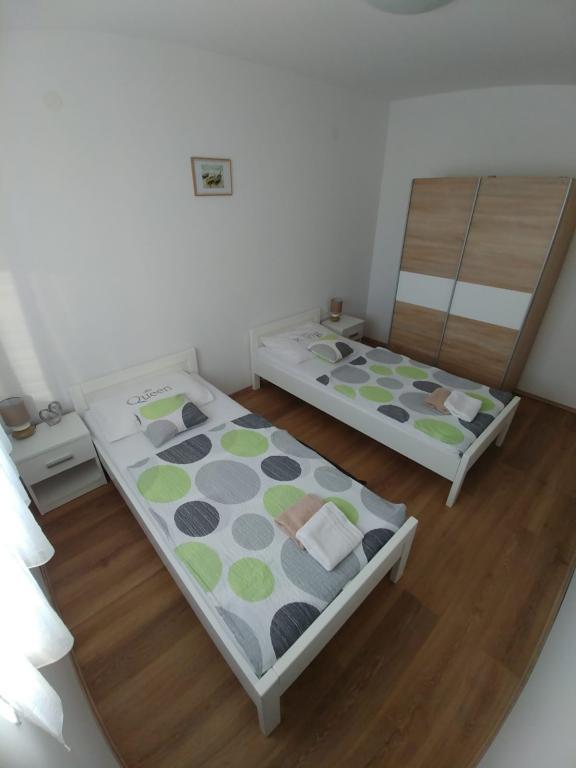 U mirnom mjestu Privlaka, nudimo smjestaj u novoizgradenim apartmanima: Valuna 1 - studio apartmanu za 2+2, s 1 spavacom sobom, dnevnim boravkom i kupaonicom te velikom terasom. Valuna 2 za 4+1, s tri spavace sobe i dvije kupaonice, jedna sa strojem za pranje rublja, kuhinje zajedno s dnevnim boravkom, velike terase. Apartmani su uredeni sa svim potrebnim za ugodan smjestaj, klimatizirani. Parking ispred apartmana. Vanjski tus i rostilj. Do prve plaze je oko 300 metara. U blizini nekoliko kafica, restorana, a vrlo blizu, na oko 250 metara je maximarket Tommy s ponudom gotove hrane. Plaza je pjeskovita, plitka s toplim morem, pogodna za djecu, a osim ove ima jos niz sljuncanih i betoniranih plaza. U okolici: Nin, Zaton, Vir, Zadar s niz kulturnih i zabavnih sadrzaja, Nacionalni park Paklenica.