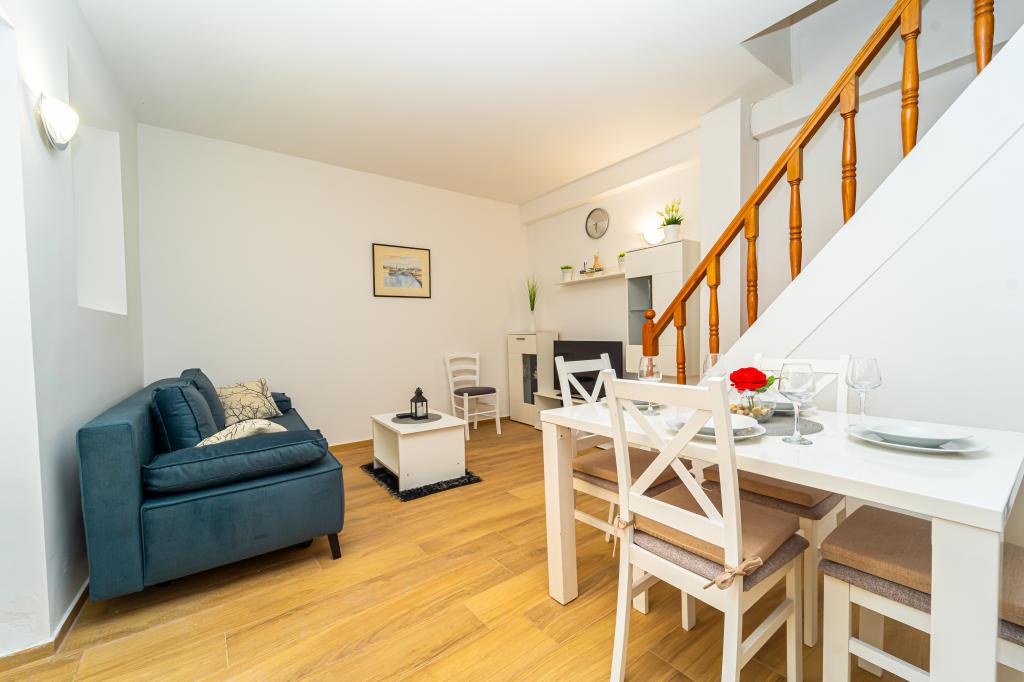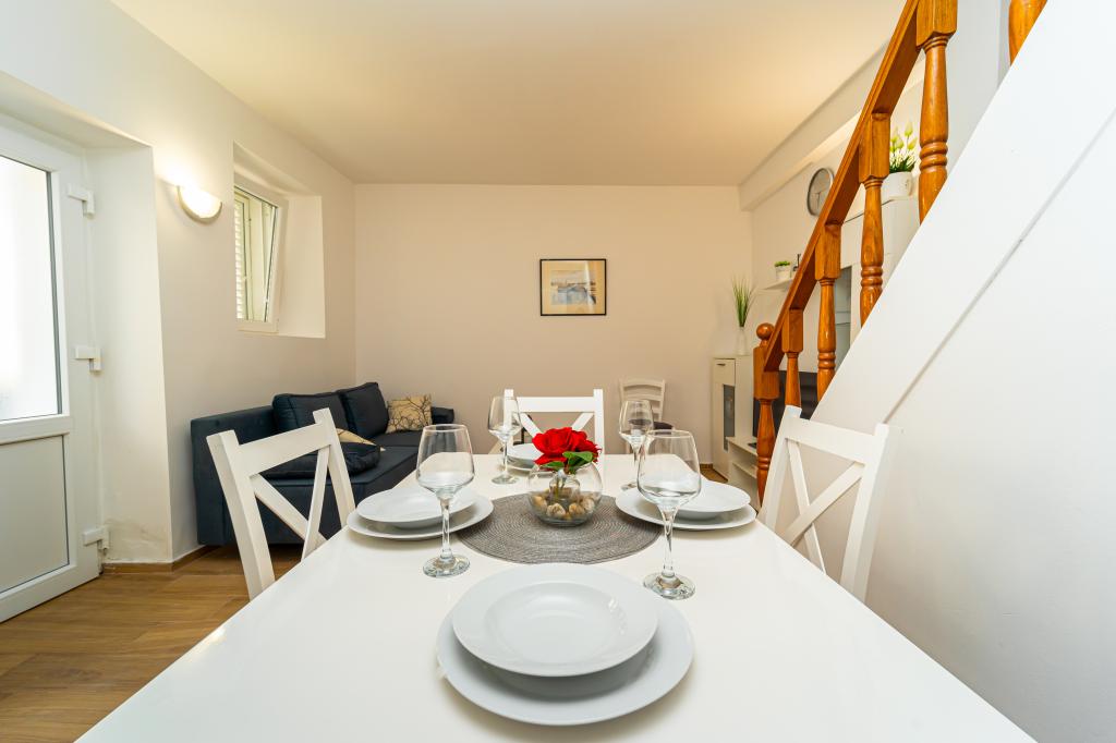 Marina kuća nalazi se u staroj jezgri Privlake svega 10 metara od predivne pješčane plaže. Radi se o kompletno opremljenoj tradicionalnoj dalmatinskoj kući koja je restaurirana prema izvornoj arhitekturi te zajedno s okolicom nudi mir i atmosferu starih dalmatinskih jezgri, stoga je idealna za obitelj s djecom. Sadrži dvije sobe, kuhinju, blagovaonicu, dnevni boravak i kupaonicu. Kuća je etažna te spavaća soba ima terasu cijelom dužinom s pogledom na more. U neposrednoj blizini je i tradicionalni kafić, a sjediti na njegovoj terasi i gledati more, brodove i jedan od ljepših zalazaka sunca iskustvo je koje se ne propušta. Za sve goste je na raspolaganju roštilj, a domaćini će vam uvijek pomoći u spremanju dalmatinskih specijaliteta na žaru. Ukoliko želite pronaći mir, bistro more, prekrasnu prirodu i nezaboravne zalaske sunca onda je Marina kuća idealan izbor za vas.