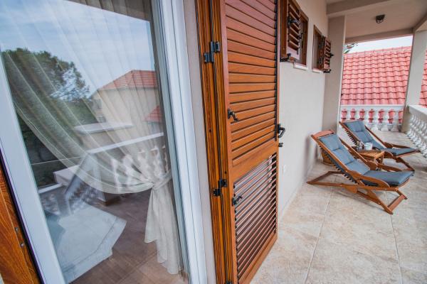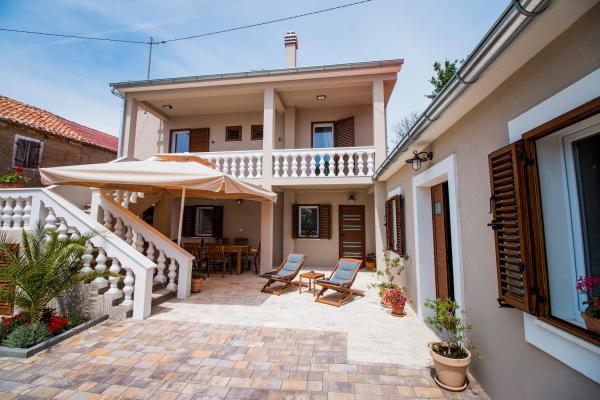 Broj osoba: 6 2; Spavaće sobe: 3; kupaonica:3; Kuća se iznajmljuje u cijelosti, idealna za obiteljski odmor i opuštanje. Smještena je u starom i mirnom dijelu mjesta Privlaka, s pogledom na more. Plaže su duge i pješčane s toplim morem. Kuća je kvalitetno i luksuzno uređena. U prizemlju je kuhinja s dnevnim boravkom sa sofa za 2 osobe, blagovaona, spavaća soba i kupaona sa whirlpool kadom, te velikom terasom. Na katu su dvije sobe. Svaka soba ima klima uređaj, kupaonicu, smart tv, te terasu s pogledom na more. Pogodna je i za odmor van ljetnih mjeseci, jer ima i podno grijanje. Kuća ima besplatan WI-FI i SAT tv.