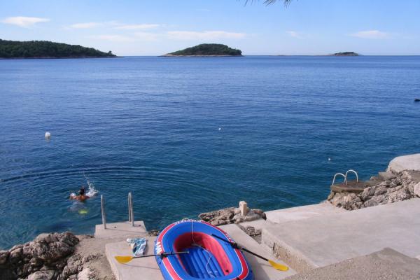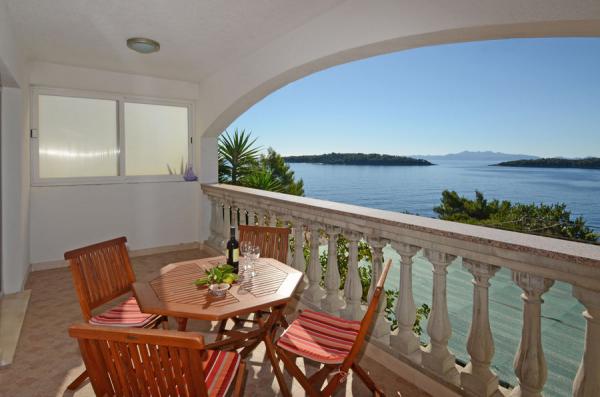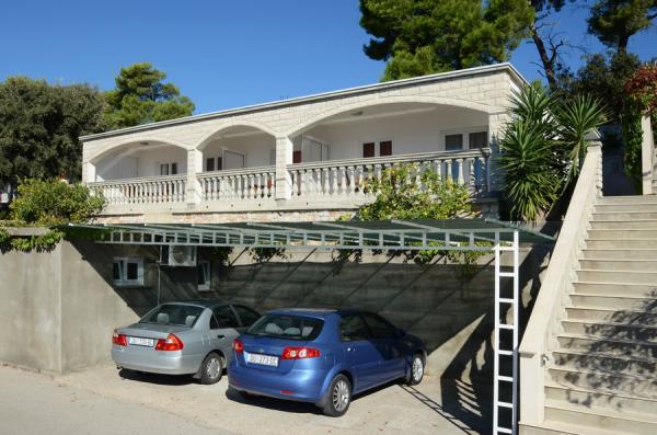 Smještaj u 3 apartmana s klimom, internetom, sat tv-om, roštiljem, parkingom. Udaljenost do plaže: 30 metara. Pogled na otočje ispred Prižbe. Zaseban ulaz za svaki apartman. Balkoni mogu biti zajednički ili odvojeni. Idealno za grupe koje provode odmor zajedno. Mogućnost najma cijele kuće. U cijene je uključena klima, internet, privatan parking. Boravišna pristojba: dodatno za platiti po dolasku. Rezervacija se potvrđuje uplatom akontacije na račun. Akontacija iznosi 25% od ukupne cijene