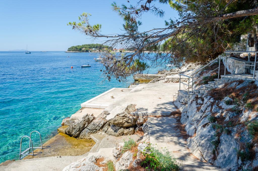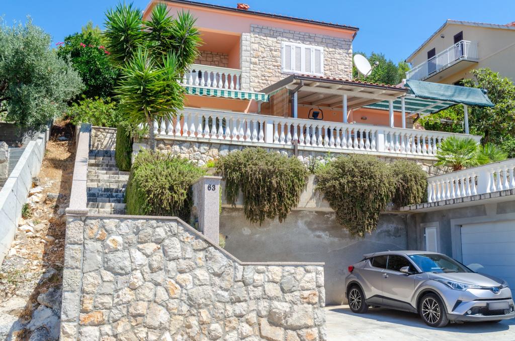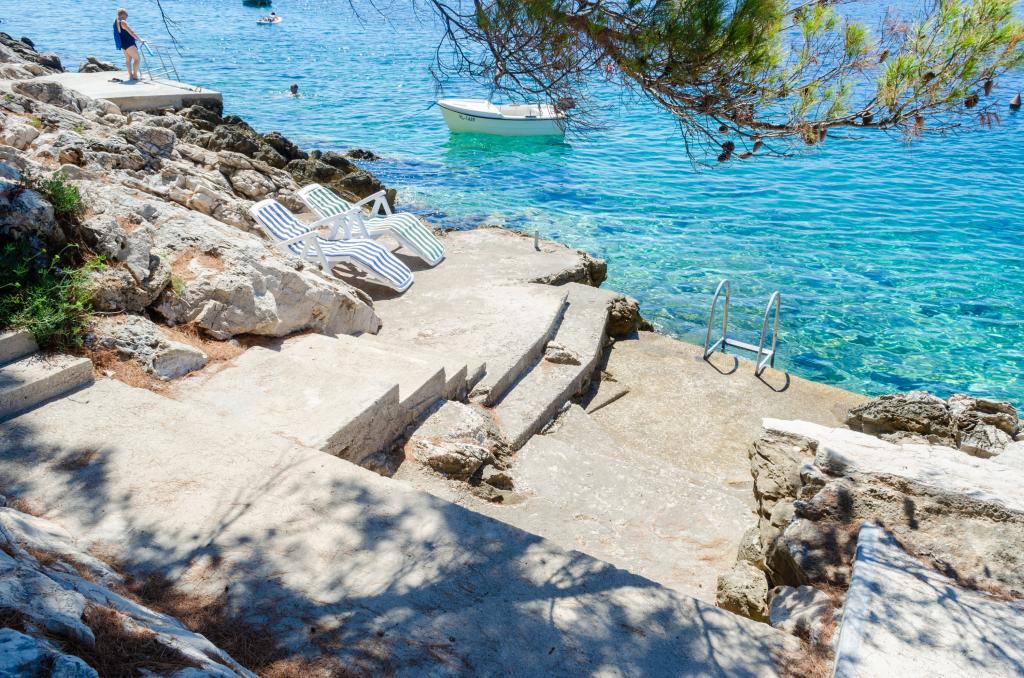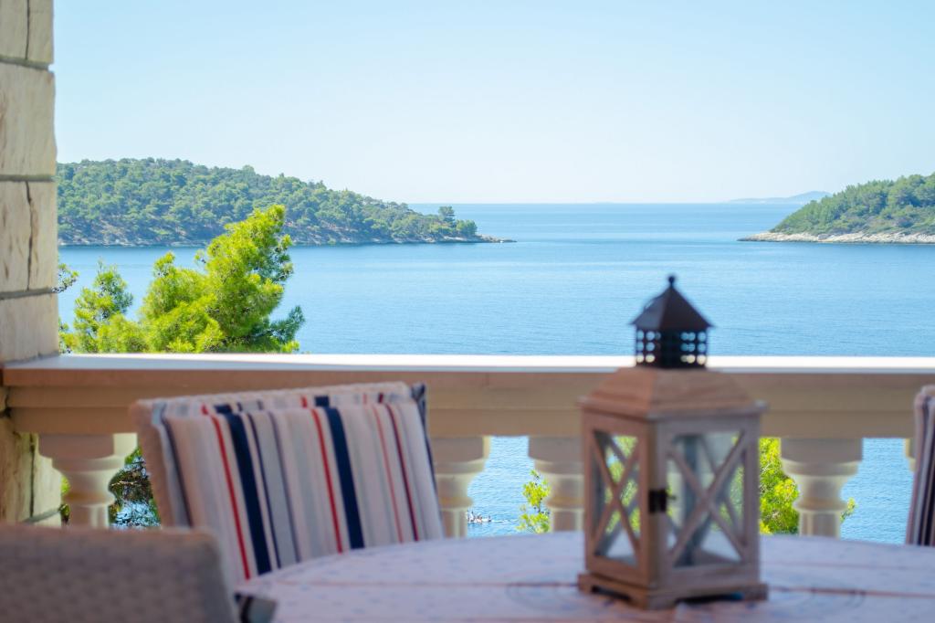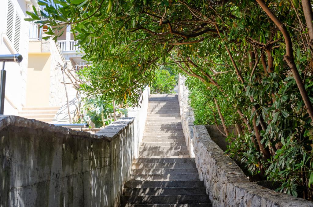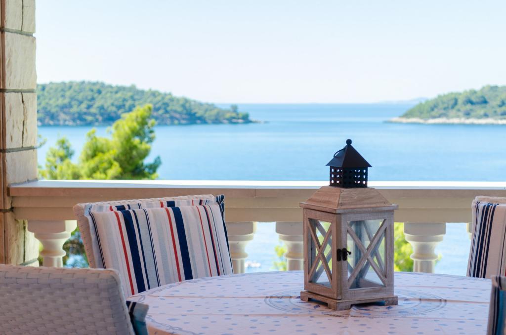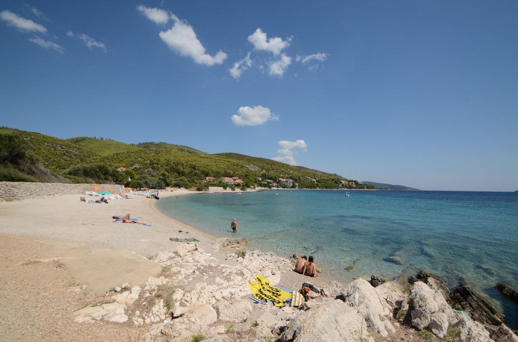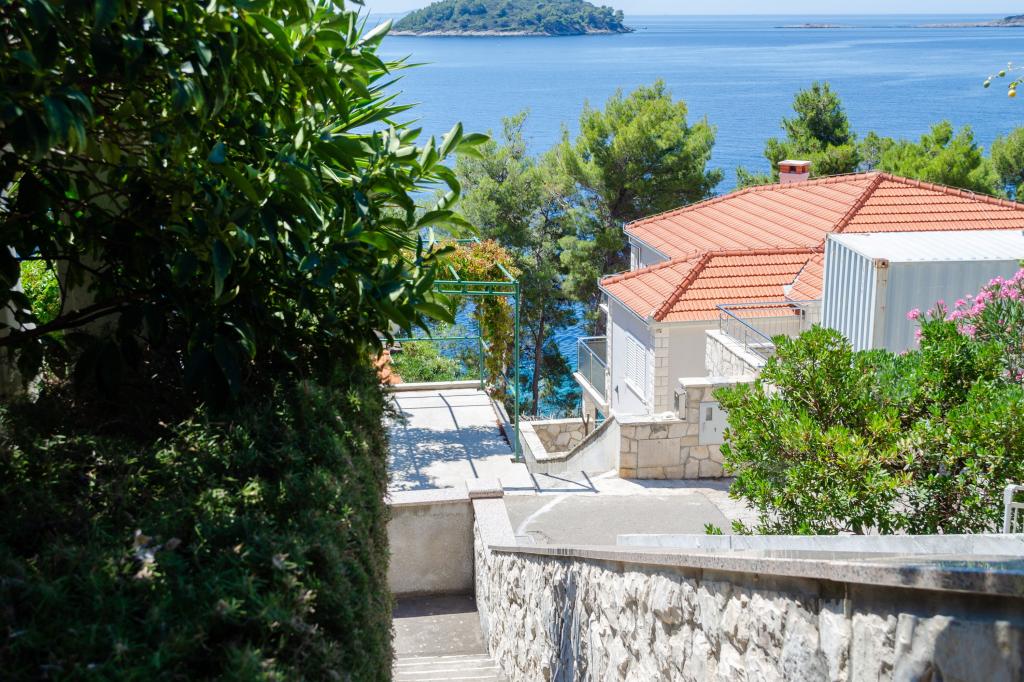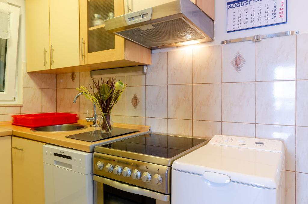 Apartman u obiteljskoj kuci ,orijentacija sjever-jug, od mora udaljen 30m , nalazi se na prvom katu.Sastoji se od dvije spavace sobe , dnevnog boravka/blagovaone s kuhinjom, manje sobe za garderobu, kupaonice/WC te terase s pogledom na more od 12m2.U blizini apartmana nalazi se prodavaonica mjesovite robe, a laganom setnjom stize se do centra Prizbe cca.400m do svih ostalih sadrzaja.