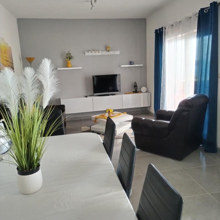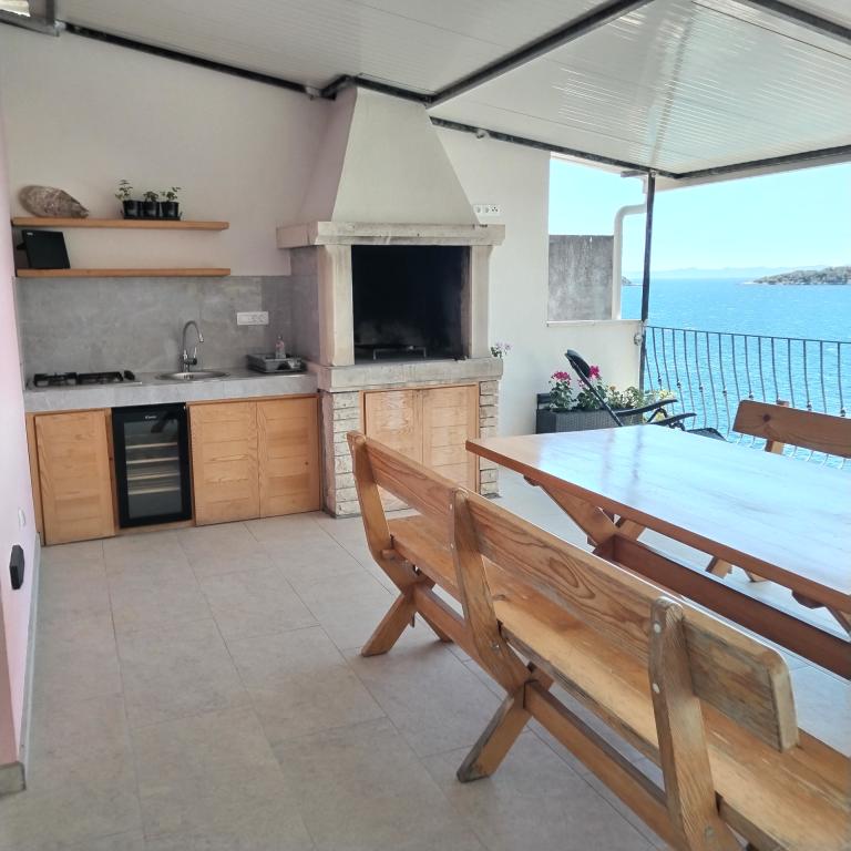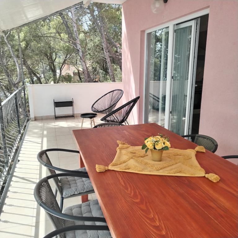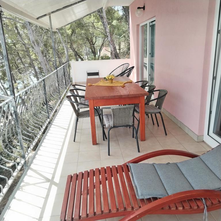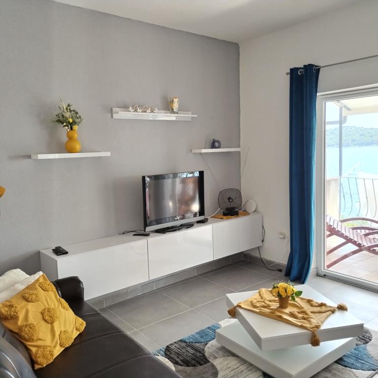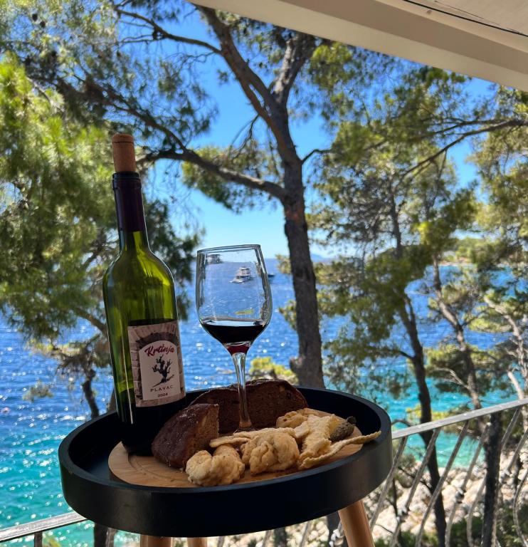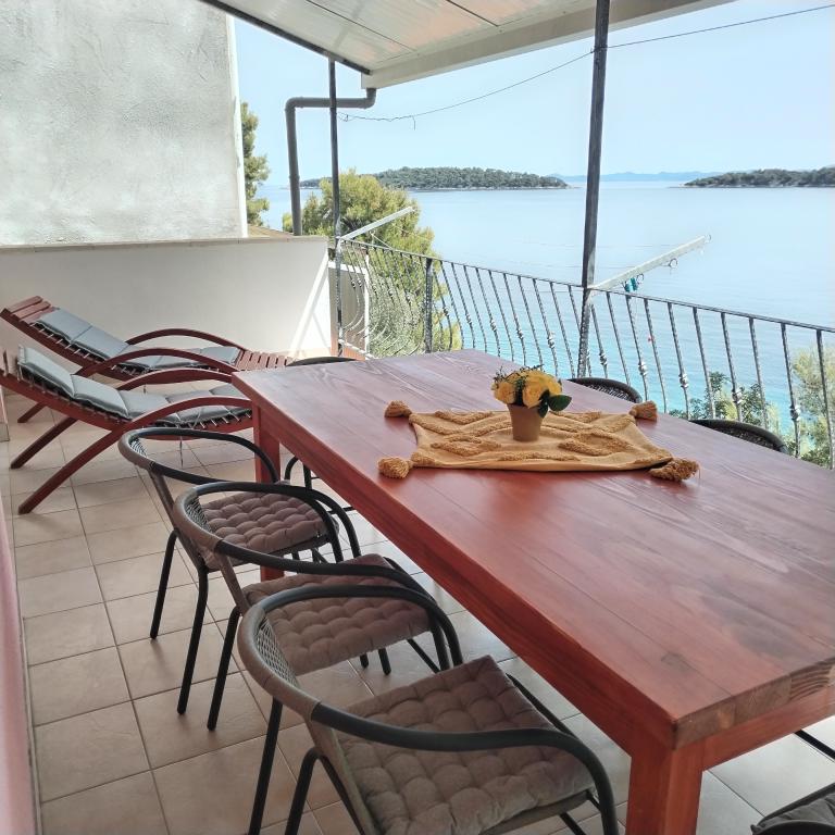 Kompletno otpremljeni apartmani u mirnom mjestu Prižba. Nalazu se 1.red do mora. Mogući organizirani izleti u našu konobu, te kupnja domaćeg maslinovog ulja i vina. Dragi gosti, dobrodošli u naš smještaj!