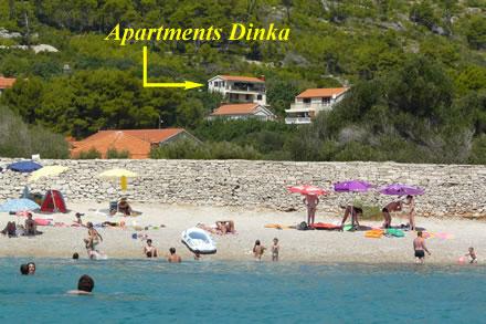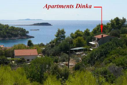 Apartmani Dinka smješteni su u uvali Prižba, u mirnom dijelu, udaljeni svega 10 min- ( 250 m) pješice od poznate šljunčane plaže. Svi apartmani imaju predivan pogled na obližnje otočiće i Lastovski kanal. Kompletno i moderno opremljeni, u dvorištu se nalazi grill i parking. U blizini se nalazi trgovina, restorani, cafe bar. Ukoliko tražite mjesto za obiteljski odmor, u tišini, s prekrasnim pogledom na kristalno čisto more, dobro nam došli. Za sve informacije slobodno nas kontaktirajte.