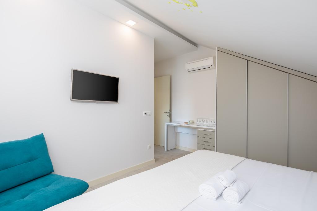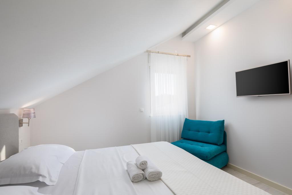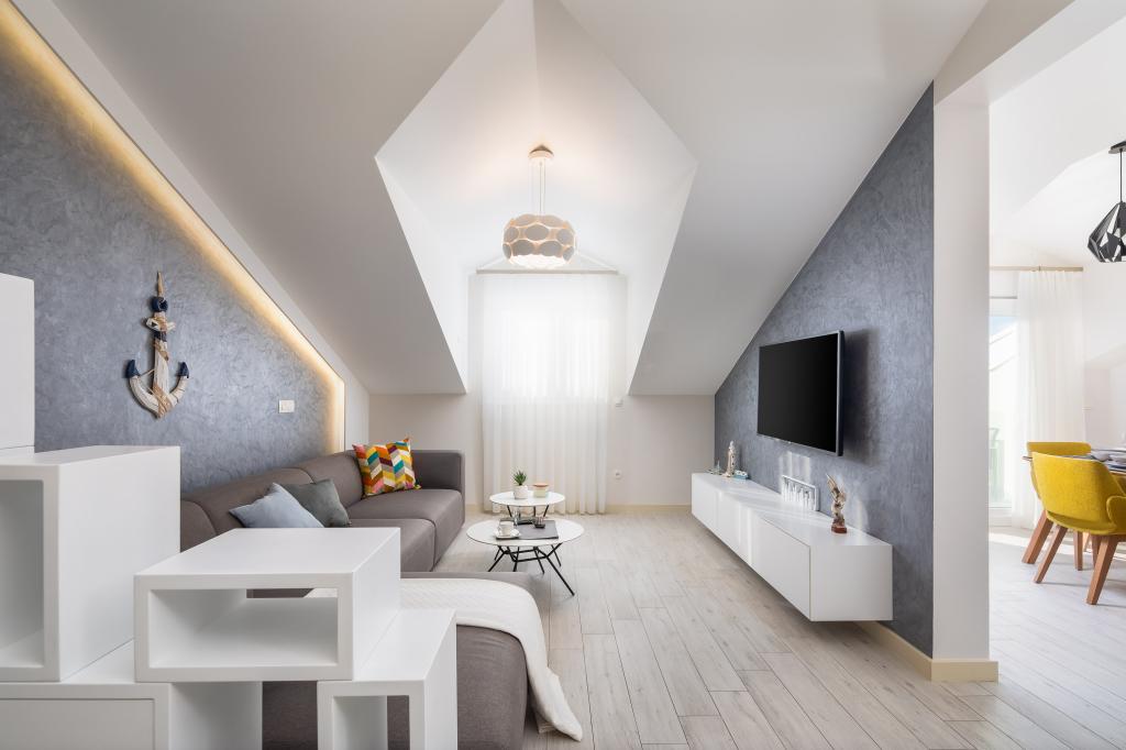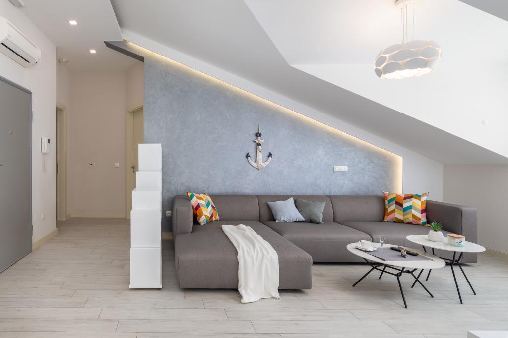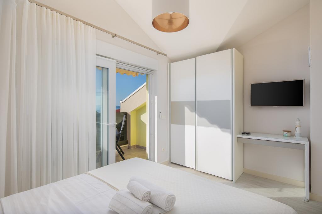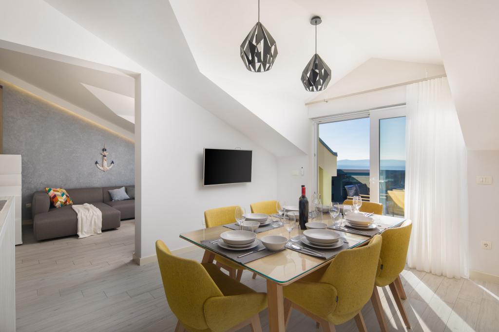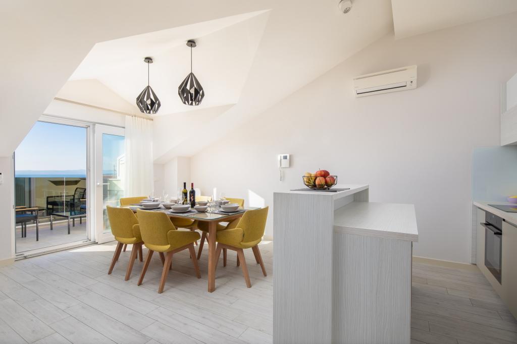 Penthouse Potter je moderni apartman s 3 spavaće sobe i 3 kupaonice. Prostrana kuhinja nudi veliku opremljenost. Balkon nudi pogled na more. Nalazi se 50m od plaže u Promajni. Pored objekta se nalaze 2 parkirna mjesta.