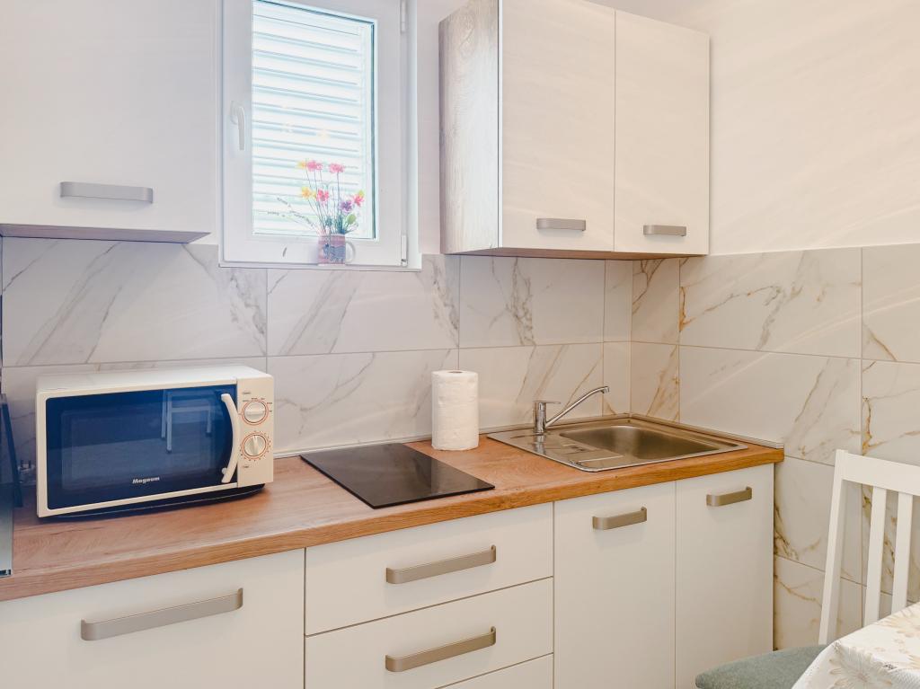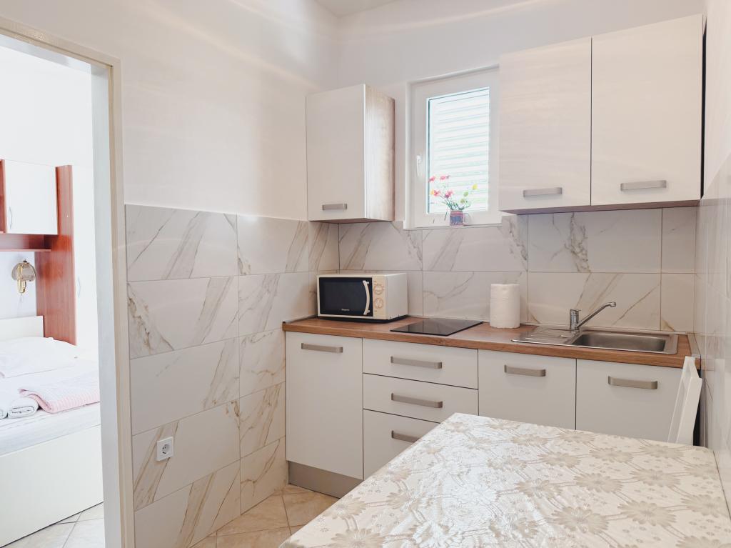 Apartmani Rosemary se nalaze u mirnom dijelu Promajne, odvojenom od buke turista i automobila. Put do plaže iznosi 300 metara. Naši partmani imaju privatne balkone s pogledom na more, privatni parking, klimatizaciju, 2 spavaće sobe i privatnu kuhinju. Iza kuće se nalazi zajednička terasa u hladovini.