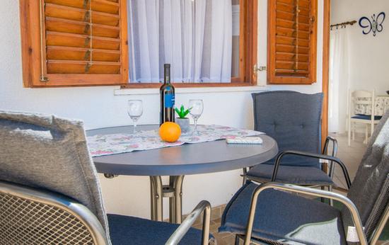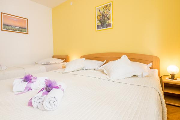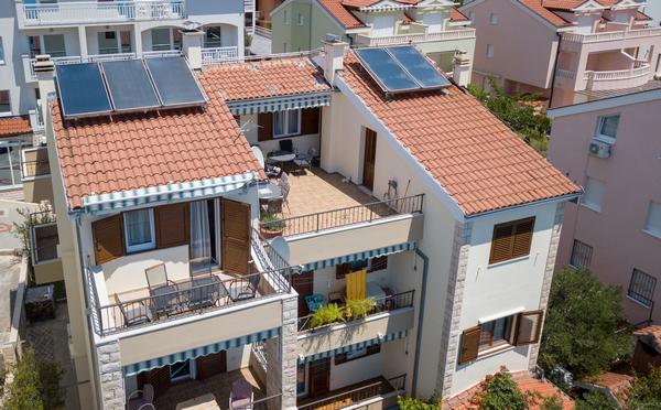 Kuća ima ukupno 6 apartmana. Svi apartmani su opremljeni klima uređajima i besplatnim wi-fi signalom. Ispred kuće je veliko dvorište sa stablima maslina i parkiralištem za sve naše goste.
