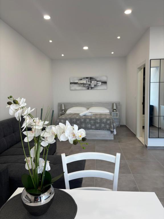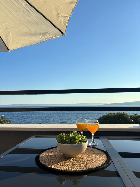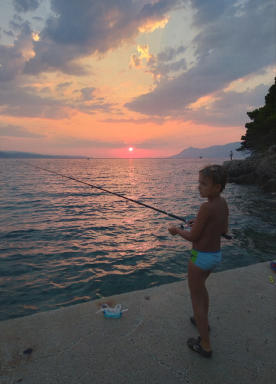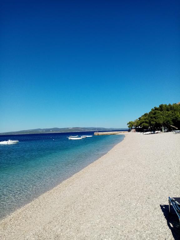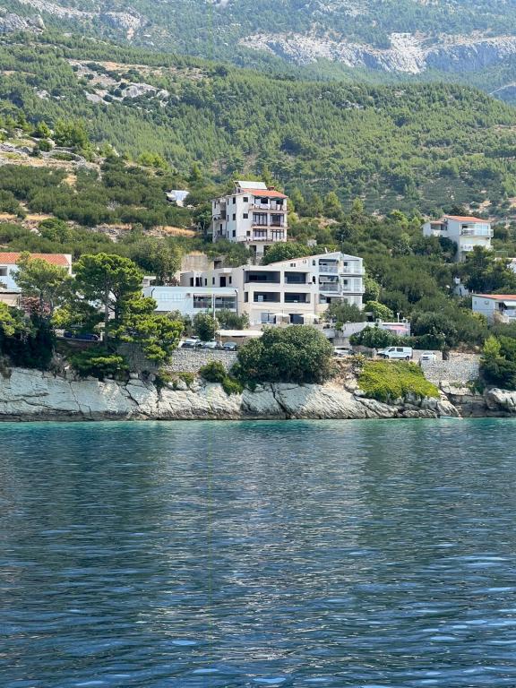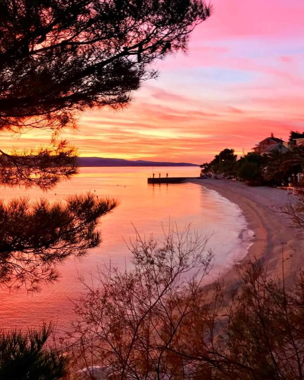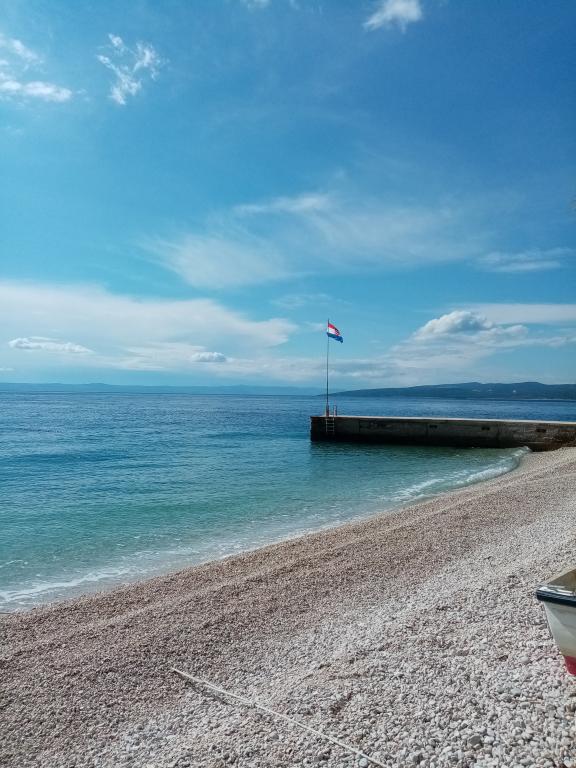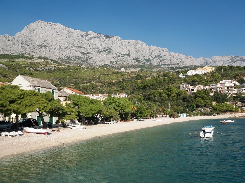 Malo mjesto na samoj plaži, ispod planine Biokovo, idealno za odmor. Naša kuća smještena je prvi red do mora, apartmani imaju terasu s pogledom na more. Plaža je šljunčana udaljena par minuta od naših apartmana a ispred kuće je stjenovita plaža. Ispred kuće su mediteranske voćke, limuni, naranče, masline.... Parking je ispred naše kuće za naše goste.