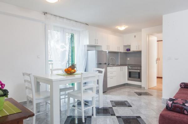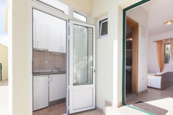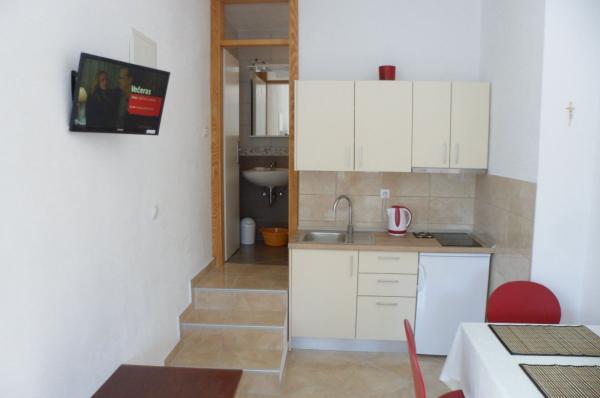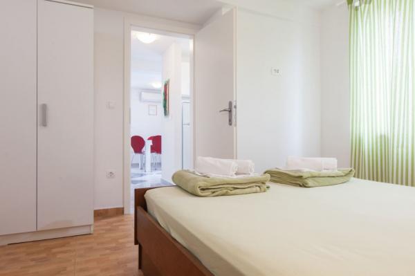 Odsjeli smo u Ap. 2 + 2 na trećem katu. Visina nije bio problem, jer je nakon spuštanja stepenicama gotovo ispod glasa plaže. Divna plaža s borovom šumom i palmama za one koji traže hlad. Stan je vrlo lijepo, ne previše velike sobe, ali dovoljno, štoviše, nitko nije sjedio na njima, jer smo imali veliku terasu. Terasa s prekrasnim pogledom. To je naš 7. boravak u Hrvatskoj, ali tako divne panorame nikada nije imala. Nasmijala sam da jede doručak lijevog oka pogledao planinama i pravo na more:-). Bila sam malo zabrinuta odvojena kuhinja (na terasi), a ispostavilo se da je prednost. Ti bi mogao ustati kada želite i dobiti spremna hranu bez ometanja drugih još uvijek spava članove obitelji. Internet radio savršeno. U kuhinji sve potrebne opreme s ogromnim hladnjakom. Vrlo čisto, ručnici se mijenjaju, na male domaće sapune, svakako na oliwce. Tim - voljeni od svih do sada susreli. Besplatno je dobio 6 (za 3 osobe) i peče svježe ulovljenu ribu na roštilju. I još jedan, zajedno kuhinjske smokve bere u vrtu. More prilično duboko, ali kristalno jasno. Sve u svemu, vrlo ugodan odmor. Hvala vam Babić !!