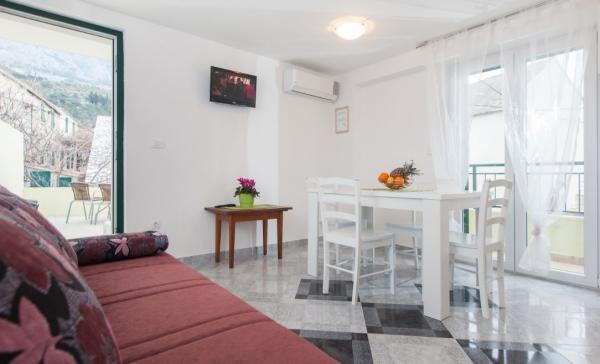 Svaka pohvala, smjestaj vrlo lijep, domaćini su jedna velika vesela obitelj, jako ugodni i čine sve da bi gostima boravak bio sto bolji. Kuća je gotovo na samoj plaži koja je isto prekrasna, s palmama i borovima podno Biokova. Pogled na sve strane prekrasan, što na planinu, što na okolne otoke (Hvar, Brač). Preporuka svima!