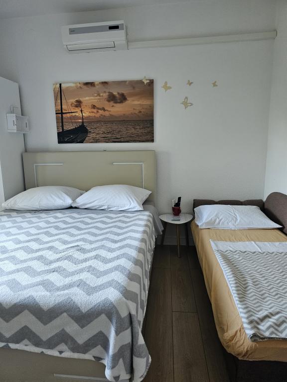Studio za 2 osobe,studio za 3 osobe,soba,apartman,prvi red uz more,centar mjesta,osiguran parking za svaku smjestajnu jedinicu(100 metara od objekta) Rezervacija moguca uz akontaciju 30% od ukupne cijene boravka. Minimalni broj.nocenja 7.