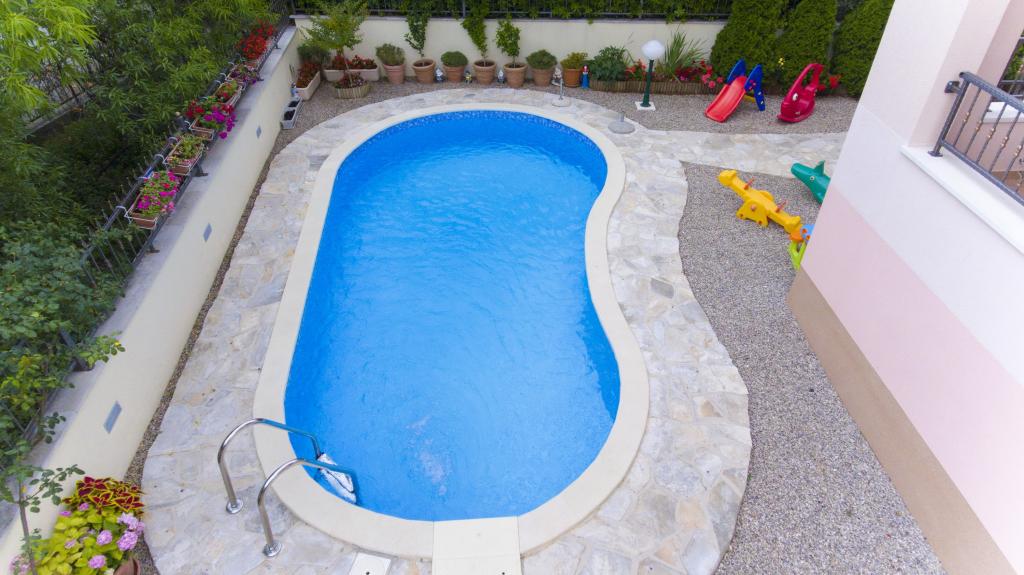 -Apartmani ''Bojka'' ( ulica ''Obala 24 C'' ) imaju u svom sadržaju korištenje zajedničkog bazena i ''grilla'' sa stolom i klupama, beby kreveti i hranilice po potrebi, 1parking/auto,