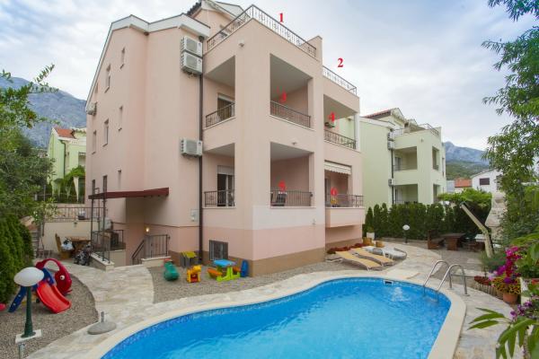 APARTMANI BOJKA -nova kuća sa bazenom, s luksuznim apartmanima nalaze se u mjestu Promajna, u ulici Obala 24 C, u centru mjesta cca 90 m do glavne plaže. Osim smještaja u ekskluzivno namještenim apartmanima, možete koristiti i bazen pored kuće. Sve kuhinje su moderno opremljene (hladnjak sa ledenicom, šporet, pećnica, čajnik, perilica za suđe...), sve kupaonice su moderno opremljene (pegla sa stolom,perilica rublja, fen...). U svakom apartmanu je besplatan wi-fi internet, Oznake app su: Bojka 1, 2, 3, 4, 5 i 6. Svaki apartman ima osiguran po jedan besplatan parking uz kuću. U dvorištu kuće se nalazi grill za sve goste kao i stol pored grilla. U objektu stalno boravi domaćica koja brine o gostima.