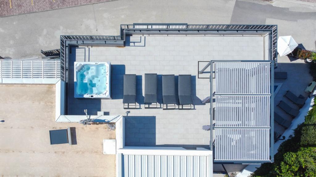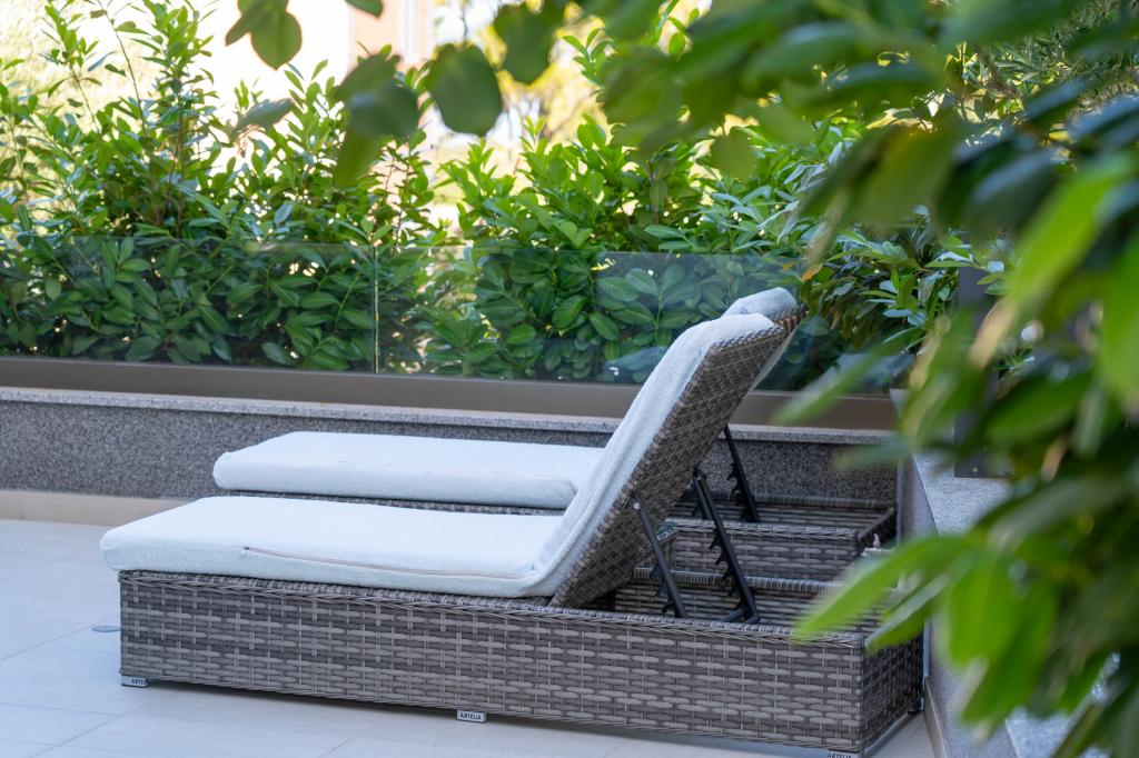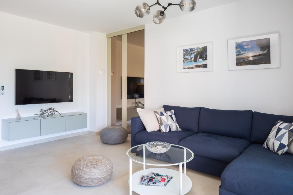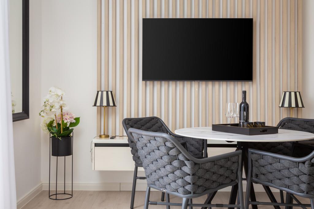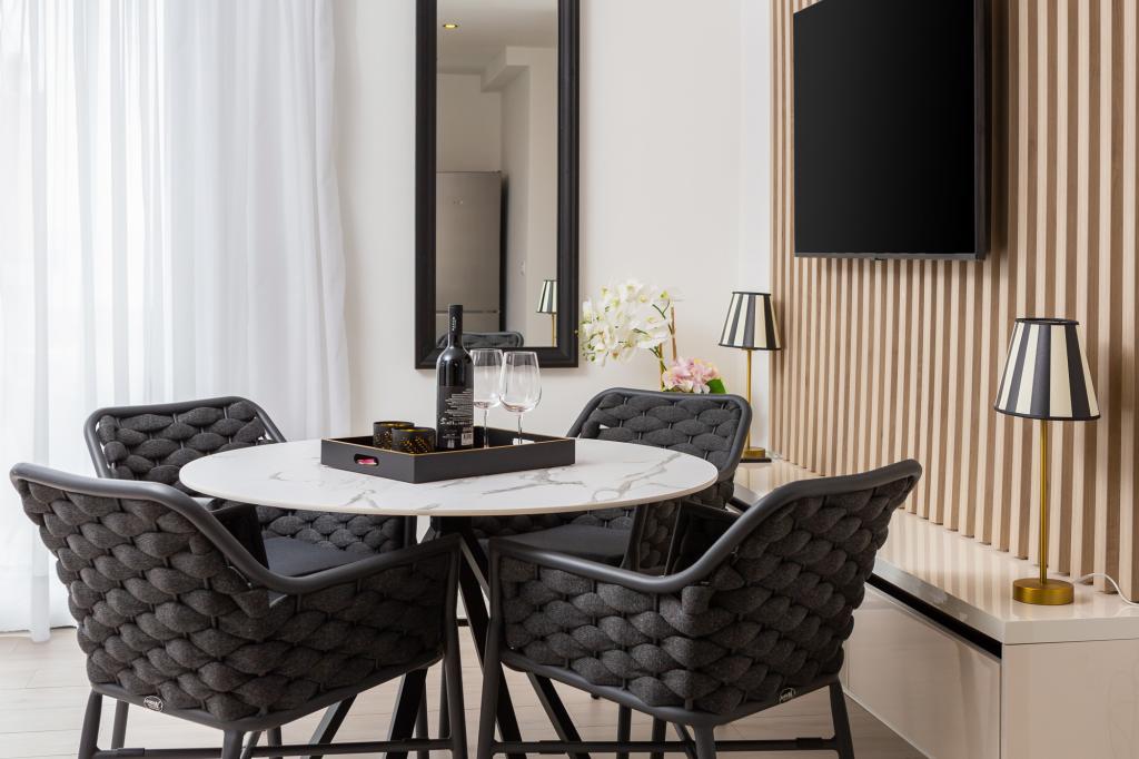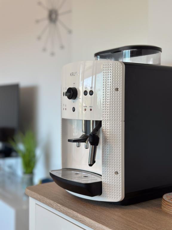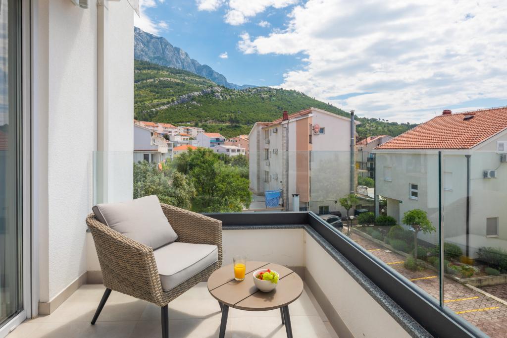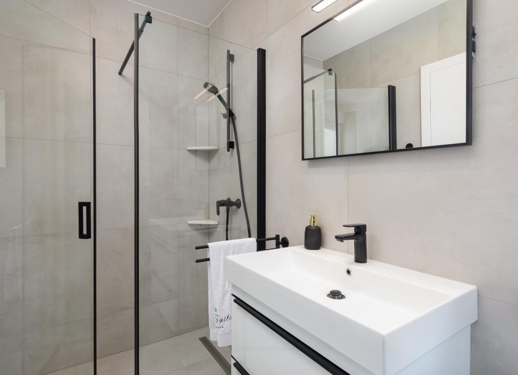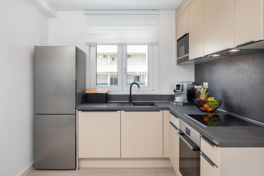 Apartman su opremljeni vrhunskim namještajem i uređajima. Apartman u prizemlju ima elektroničku tendu i dodatni vanjski tuš.