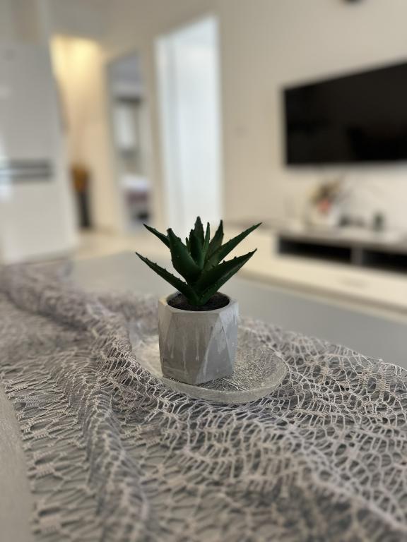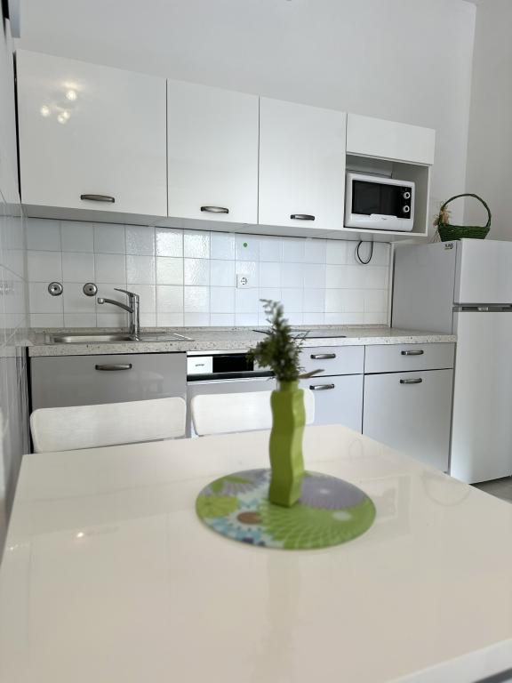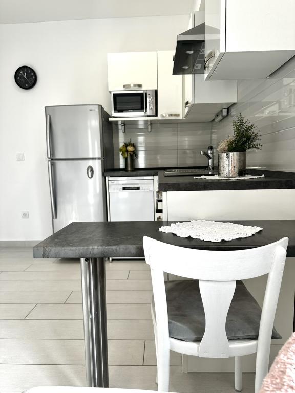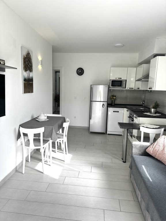 U app A4+1 proveli smo predivnih 7 dana. Gospođa Marija je izuzetno ljubazna i pristupačna osoba, spremna pomoći. App je točno onakav kakav je na slici, aparati su vrhunske marke i kvalitete, app je izuzetno čist, uredan i vidi se da je redovno održavan. Trgovina je blizu, plaža mrvicu dalje. Sve kao stvoreno za odmor duše i tijela. Gospođo Marija, Vama sve pohvale i hvala Vam za sve. Lp, Tajana
