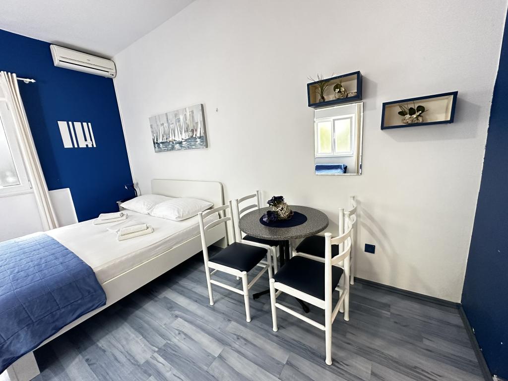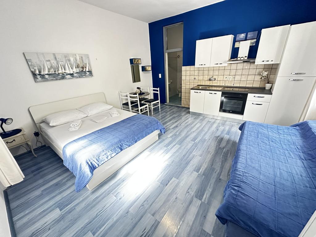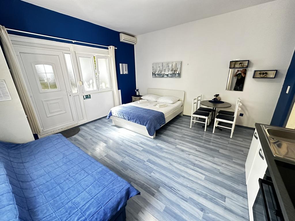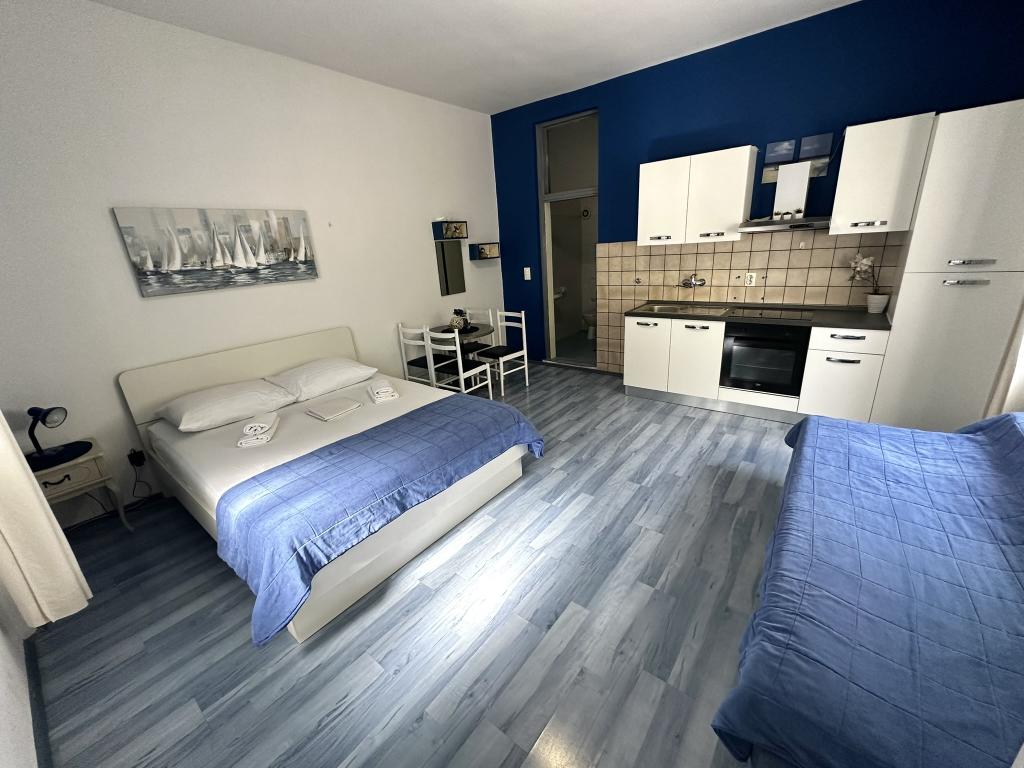 U ponudu su dva predivna dvosobna apartmana, potpuno opremljena i dva klimatizirana studija. Dvosobni stanovi imaju dvije sobe sa bračnim krevetima. Jedan od apartmana ima mogućnost smještaja dodatne dvije osobe na kauč. Dva studija imaju svaki bračni krevet i kauč na rasklapanje i pogodni su za obitelj od maksimalno 4 osobe, od kojih su dvoje djeca. Sve kupaonice u dvosobnim stanovima su opremljene tušem, a sadrže i perilice rublja i fen. Kuhinje su potpuno opremljene. Sadrže pećnicu, mikrovalnu pećnicu, frižider, perilicu suđa i kuhalo za vodu. Naravno, pobrinuli smo se i za sav kuhinjski pribor koji vam je potreban. Studio ima kupatilo s tušem, opremljenu kuhinju sa mikrovalnim pečnicama, štednjakom i frižiderom. Nalaze se na 300 metara od mora u Promajni te imaju besplatan WiFi klima uređaje. Na raspolaganju je besplatno privatno parkiralište u sklopu objekta.