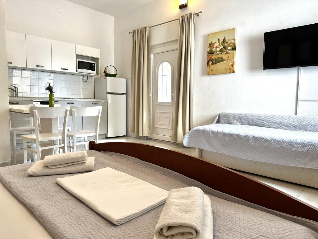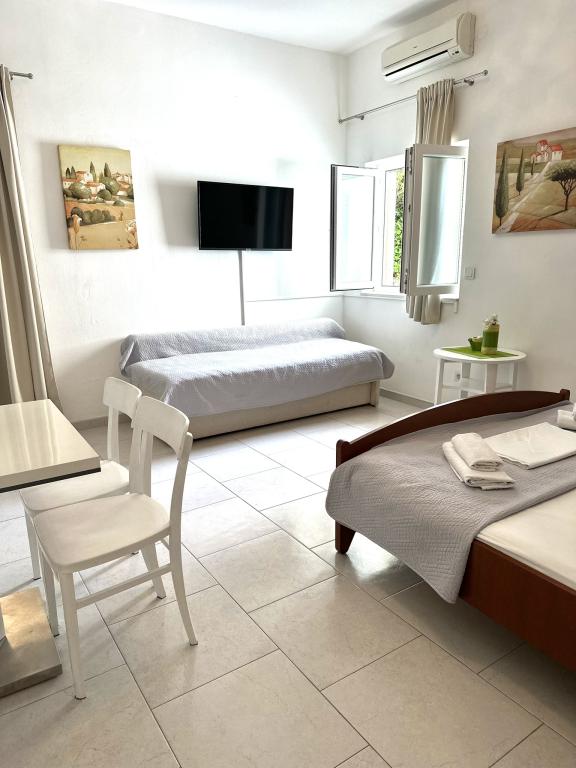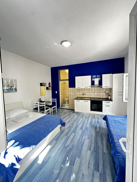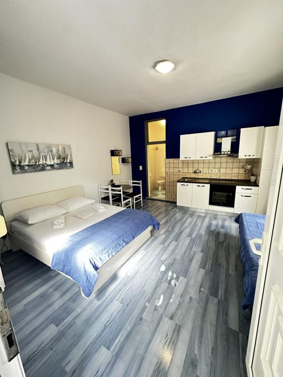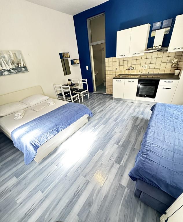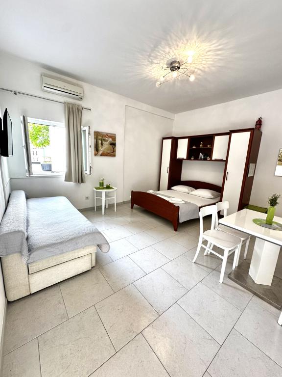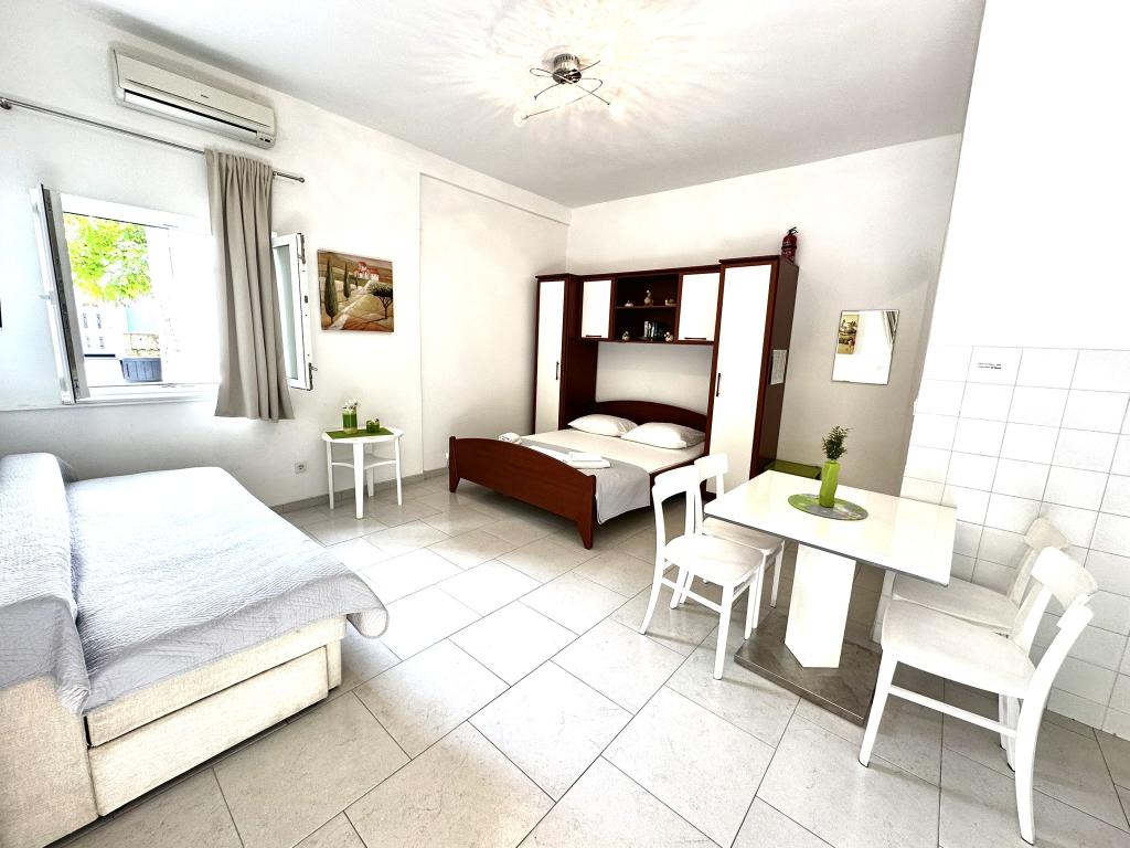 U ponudu su dva predivna dvosobna apartmana, potpuno opremljena i dva klimatizirana studija. Dvosobni stanovi imaju dvije sobe sa bračnim krevetima. Jedan od apartmana ima mogućnost smještaja dodatne dvije osobe na kauč. Dva studija imaju svaki bračni krevet i kauč na rasklapanje i pogodni su za obitelj od maksimalno 4 osobe, od kojih su dvoje djeca. Sve kupaonice u dvosobnim stanovima su opremljene tušem, a sadrže i perilice rublja i fen. Kuhinje su potpuno opremljene. Sadrže pećnicu, mikrovalnu pećnicu, frižider, perilicu suđa i kuhalo za vodu. Naravno, pobrinuli smo se i za sav kuhinjski pribor koji vam je potreban. Studio ima kupatilo s tušem, opremljenu kuhinju sa mikrovalnim pečnicama, štednjakom i frižiderom. Nalaze se na 300 metara od mora u Promajni te imaju besplatan WiFi klima uređaje. Na raspolaganju je besplatno privatno parkiralište u sklopu objekta.