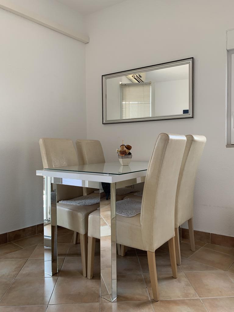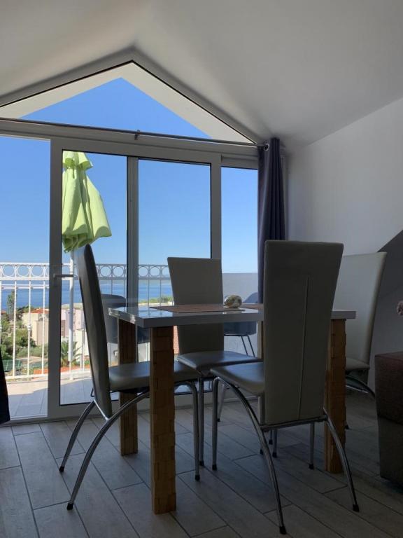 Promajna apartman 200 m od mora, izgrađeno 2007. Zasebna 3 apartmana po etaži s pogledom na more. Osiguran parking, televizor, klima, internet. Plaža se nalazi u borovoj šumi. Malo primorsko mjesto idealno za odmor, pored kojeg se nalazi dječje selo poznato po liječenju bronhitisa. Svaki apartman ima spavaću sobu s bračnim krevetom plus pomoćni, kupatilo, kuhinja s trosjedom, terasa s pogledom na more. Namještaj novi. Makarska udaljena 5km. Baška Voda udaljena 3km. Promajna je povezana s Baškom Vodom šetnicom kroz borovu šumu uz more. Boravišna taxa nije uključena u cijenu.