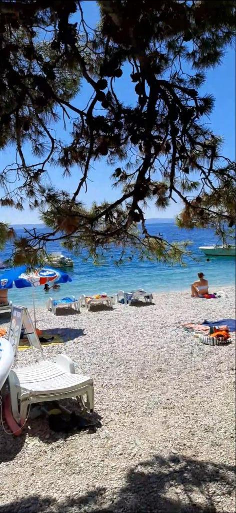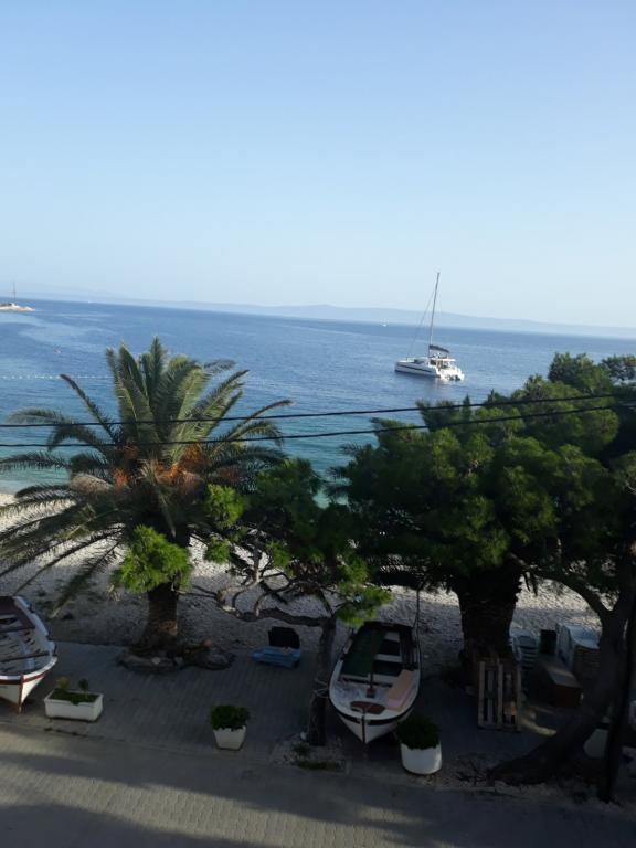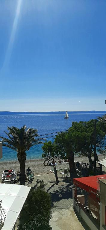 Odličan apartman s velikim balkonom i lijepim pogledom na more u mirnom mjestu! Ako ste za aktivni odmor ili noćne izlaske šetnjicom imate 1 km do Promajne, 4 km do Baške vode i 5 km do Makarske.