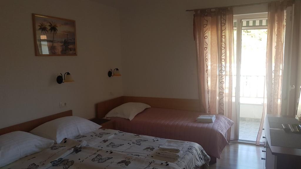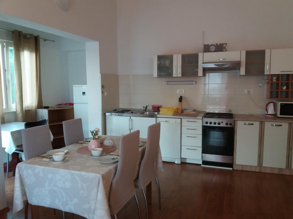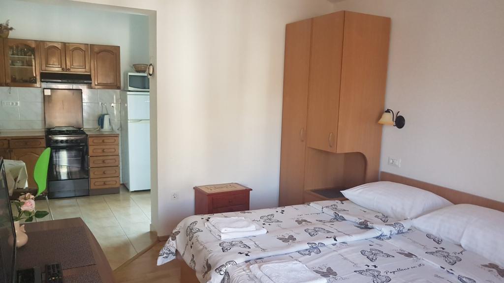 Jelena Apartmani smješteni u malom mirnom turističkom mjestu zbog čega je vrlo pogodan za odmor sa obitelji ili parove željne mira i opuštanja. Apartmani se nalaze na zadnjem katu kuće dvokatnice, mali ali funkcionalni apartman za tri osobe i jedan malo veći komforni apartman za 4 osobe ugodnim smještajem, opremljeni standardnim aparatima i potrepštinama ( Klima uređaji, TV, besplatni Wi-Fi, frižider, mikrovalna, pećnica, kuhalo za vodu) sve osnovno što Vam je potrebno za što ugodniji boravak kod nas. Apartmani su u centru mjesta, prvi red su do mora i s pogledom na more, odmah uz samu kuću nalazi se besplatan parking nedaleko od apartmana nalazi mala trgovina hrane i pića, kafić i restoran. Veliki apartman sadrži jednu sobu sa bračnim ležajem i velikim kupatilom, dnevni boravak sa trosjed garniturom koja se otvara u ležaj za dvoje, dvosjed garnitura, plus još jedno manje kupatilo, kuhinja opremljena sa gore navedenim dodatak mašina za suđe. Veliki balkon sa pogledom na more.