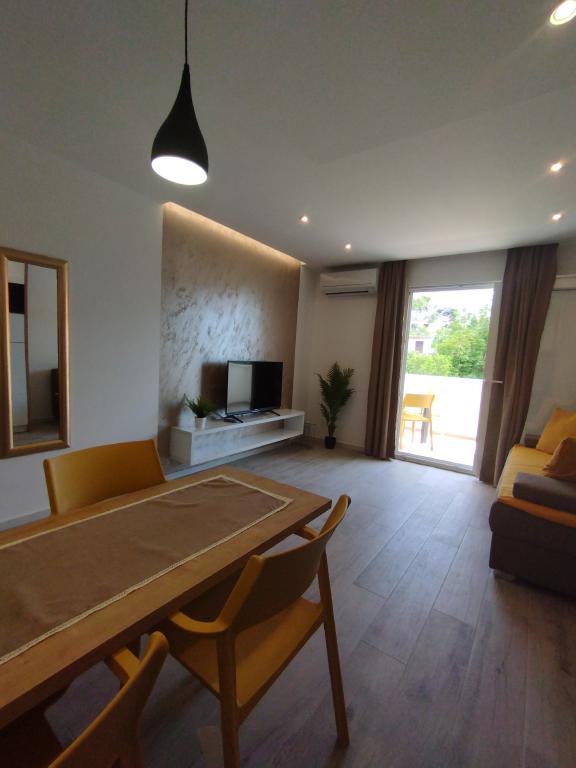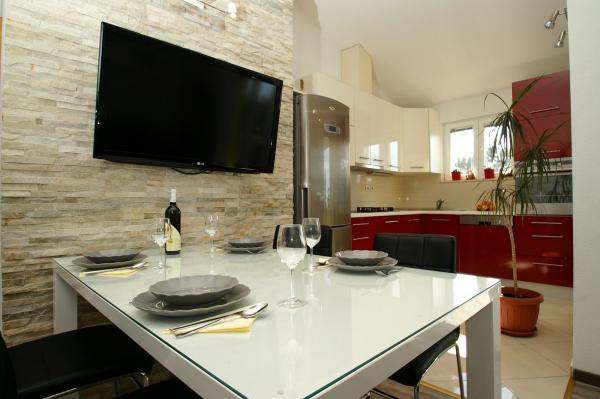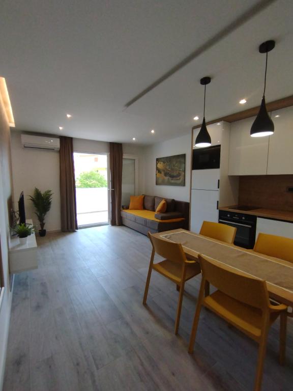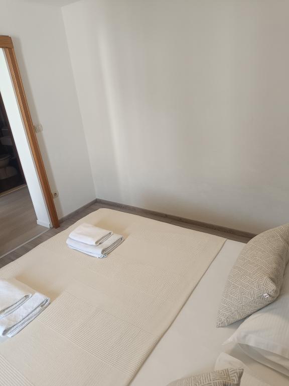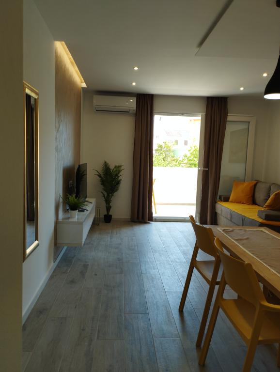 Lokacija savršena, plaža ispred kuće, kao i pekara, market, dječje igralište, u suštini, u krugu od 50 m ima apsolutno sve potrebno. Apartman nov, uredan, lijepo uređen i opremljen potrebnim suđem i higijenom, nije na sunčanoj strani, tako da je ugodan za boravak i danju i noću, jako malo smo koristili klima uređaj. Vlasnici nasmijani, prijatni, gostoprimljivi, ne uznemiravaju goste, čiste peškire i slično nismo morali ni tražiti, ostavljani su nam u kesi ispred vrata. Promajna također divna. Sve u svemu, ocjena 5+, vraćamo se narednih godina.