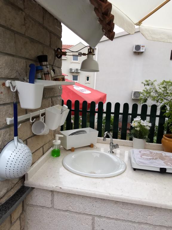 Naši apartmani su kompletno renovirani u staroj kamenoj kući u mediteransko-dalmatinskom stilu, sa dosta malih i uskih uličica, tradicionalno-zelenih prozora s puno zelenila i cvijeća, od mora smo udaljeni cca 150-200 m, do trgovina i restorana 50 m, 50 m. m do bankomata m, do tržnice 200 m, do pošte 200 m, do ljekarne 3000 m u Baška Voda, do liječnika, doma zdravlja u Makarskoj 5000 m, do zračne luke Split 60 km (organiziramo prijevoz za naše goste od/do Splitska zračna luka uz minimalnu naknadu). Plaža u Promajni je pjeskovita i proteže se sve do Baške Vode (cca. 4000 m) s puno borove hladovine i egzotičnih uvala. Apartmani u svom sastavu imaju veliku terasu(20m2). Objavljene cijene su važeće za predviđeni minimalan broj noćenja. Za slučaj da nije ispunjen ovaj uviet cijena se uvećava do 30%.