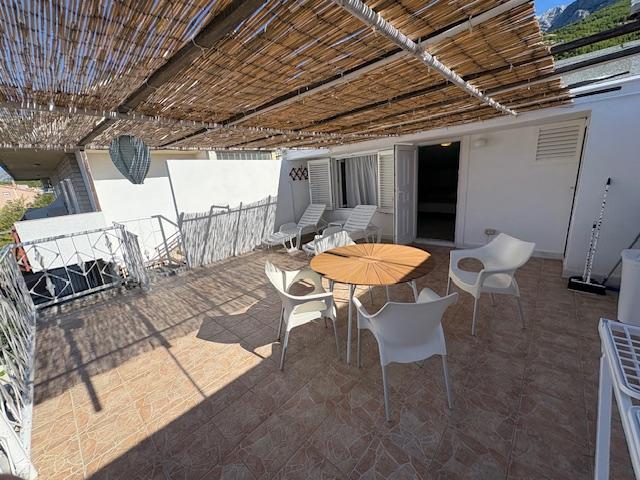 Cetri kompletno opremljena apartmana sa posebnim ulazom. Svaki prostor ima privatnu terasu ili privatnu bastu,moderni klima uredjaj i wi-fi signal.Kucni ljubimci su dobrodosli. Check in 3 PM and check out 11 AM . Objekat se nalazi 10 minuta hoda do plaze,trgovina i restorana. Parking je udaljen 150 metara od kuce, a autobuska stanica je 400m i omogucava jednostavan prevoz do vecih mjesta: Makarska 7 km, Split 60 km, Dubrovnik 230 km, Vepric - hodocasce 6 km,Medjugorje hodocasce 35 km. Brodski prevoz do obliznjih mjesta je na udaljenosti od 350m kao i lokacija za organizovane ekskurzije do obliznjih otoka (3- 4 puta tjedno).