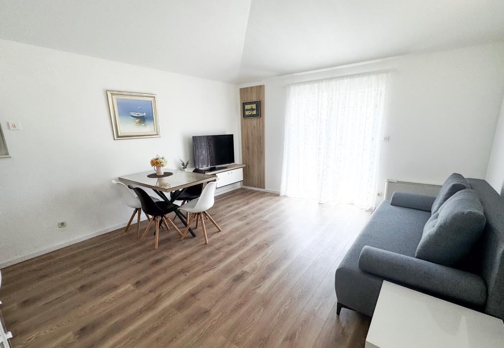 Apartman: velik, čist, uredan, sve potrebno u njemu, veliki balkon, bazen super za djecu. Lokacija: plaža i sve ostalo u blizini, auto nam cijelo vrijeme boravka nije ni trebao, sve na pješačkoj udaljenosti. A prije svega vlasnici dragi i ljubazni, sve sto je unaprijed dogovoreno je tako i bilo, bez ikakvih neugodnih iznenađenja, svaka čast. Ugodan i lijep odmor, savršen.