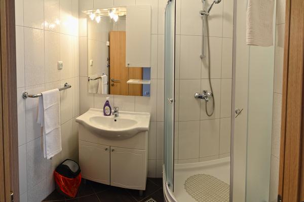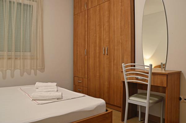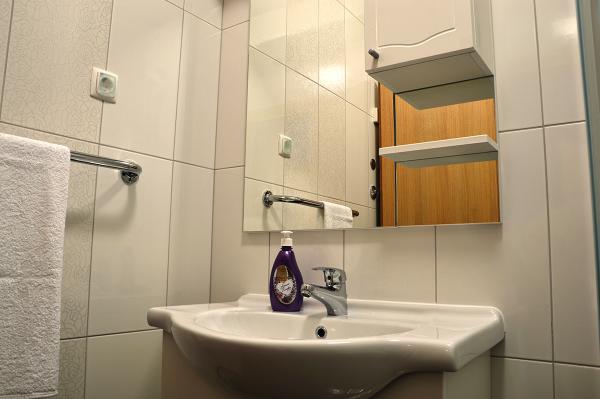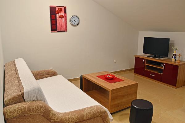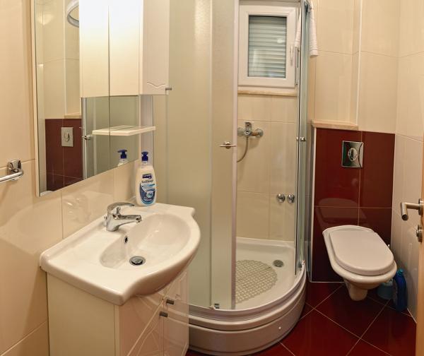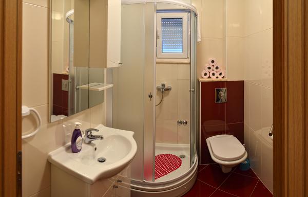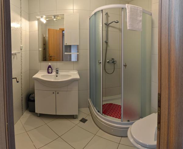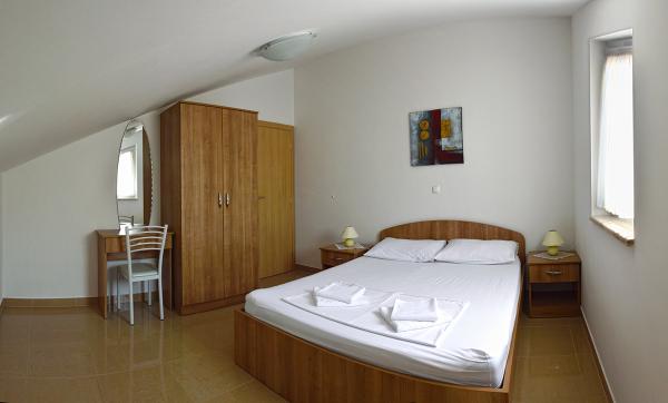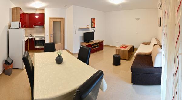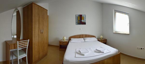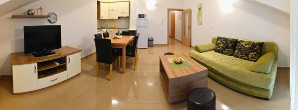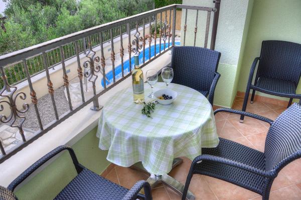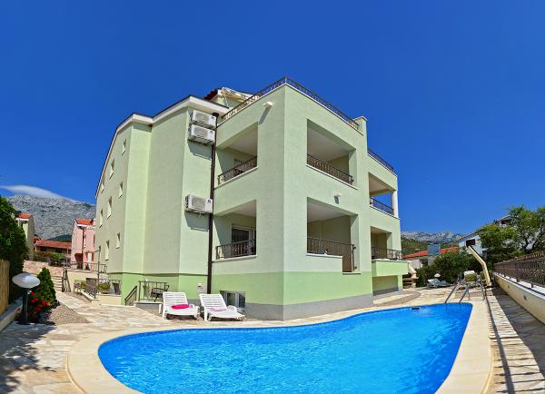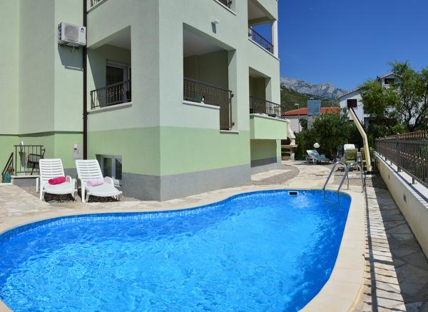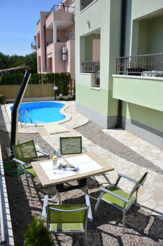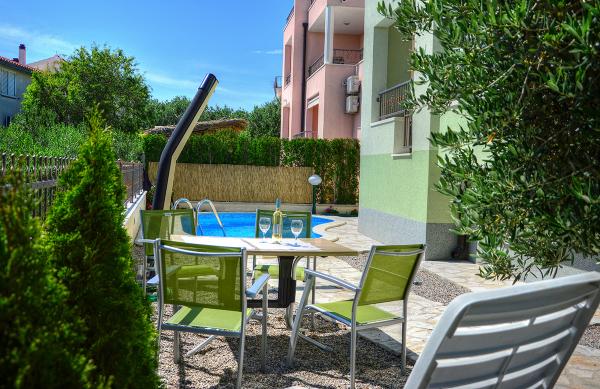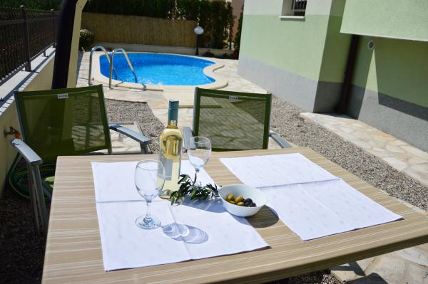 Odsjeli smo u apartmanu 2+2 u suterenu. Sve je bilo prekrasno čisto, novo, potpuno opremljeno. Popeli smo se stepenicama i mogli skočiti ravno u bazen. Bazen je bio lijep, čist. Domaćica je jako simpatična. More je blizu, 3 minute hoda od kuće. Sve u 1*. Rado bismo se vratili ovamo!