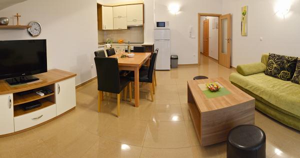 Turistička pristojba je uključena u cijenu.Smještaj je bio odličan, u apartmanu smo imali sve što nam je bilo potrebno za ugodan boravak, a ako nam je nešto zatrebalo mogli smo se obratiti ljubaznoj domaćici. Sve je bilo čisto, uredno i još i ljepše nego na fotografijama. Pogled na more je bio božanstven! Bazen je bio čist, voda topla i mogli smo se kupati u ugodnoj i privatnoj atmosferi. Domaćini preljubazni, usluga na visokom nivou. Sve preporuke. Mi se vraćamo!