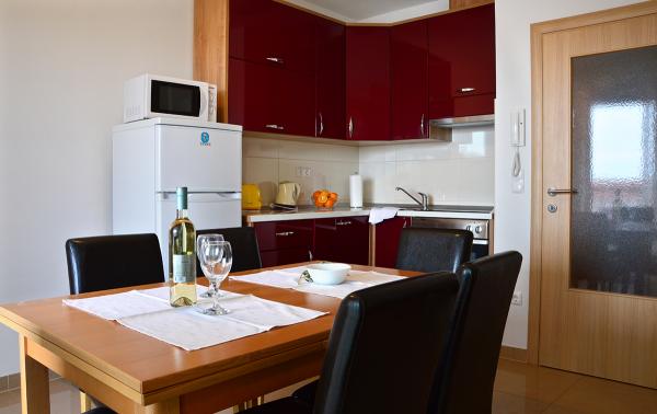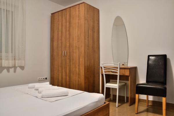 Svi apartmani su novi i luksuzno opremljeni. Pored kuće je bazen. Apartmani su udaljeni od plaže 60 metara.
