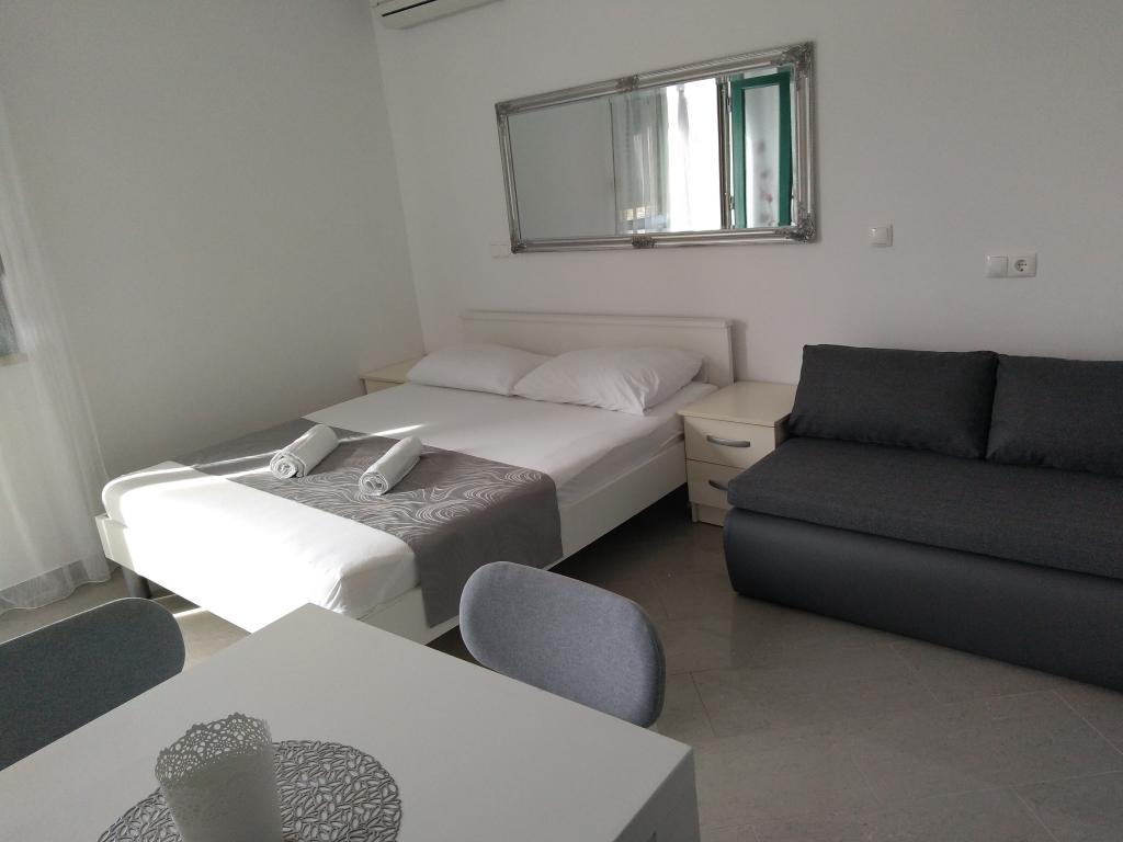Iznajmili smo dva apartmana. Ispostavilo se da se oba stana nalaze u zasebnim zgradama na suprotnoj strani ulice, iako su navedeni u istom oglasu. To nije ometalo funkcionalnost jer ste mogli koristiti oboje. Lokacija je kao što je opisano. Blizu gradske plaže, ali je bila velika gužva, pa smo hodali 500m dalje. Konzum trgovina u blizini. Oba apartmana su vrlo različita u standardu, iako su cijene iste. Apartman 46737 je veći i moderniji. Ima veliku kuhinju s modernom opremom, kupaonicu s bideom (nije dostupan u 65273) i dvije terase. Apartman 65273 trebao bi biti svakako jeftiniji. Mala terasa na kojoj je teško pojesti obrok za 5 ljudi. Kuhinja je bila najgora. Njegova veličina i nedostatak radne površine onemogućili su njegovu učinkovitu upotrebu. Kuhinjsko posuđe (lonci) jako oštećeno. Vrlo malo pribora za jelo, tj. jedan po osobi. Balkon ima tendu koja učinkovito štiti od sunca. Stan ima radnu klimu. Prednost je veliki parking.