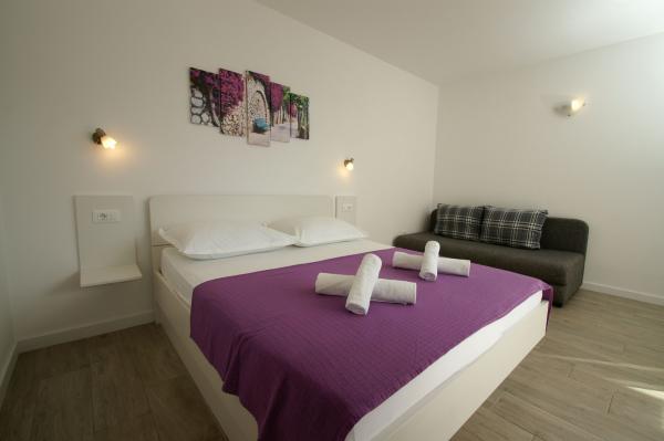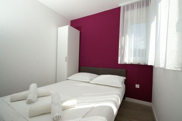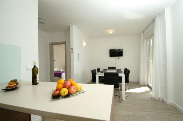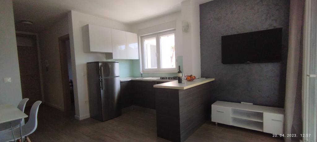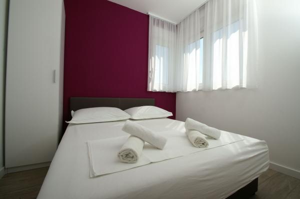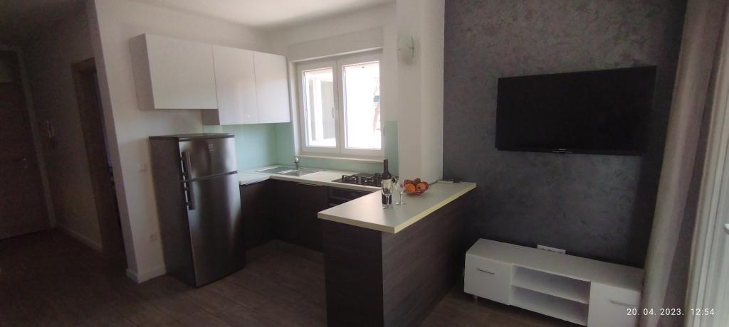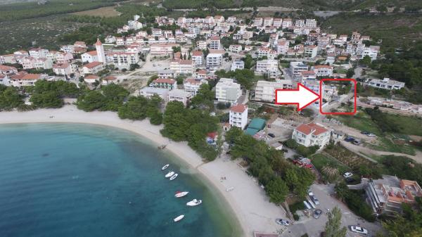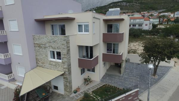 Apartmani u novoizgrađenom objektu, 60 metara od prekrasne šljunčane plaže sa prirodnom hladovinom. Apartmani su potpuno opremljeni za vaš ugodan boravak. Parking je osiguran u dvorištu objekta. Svi apartmani imaju otvoren pogled na more. U samoj blizini nalazi se zelena tržnica, pekara te market. Do plaže ima 80 metara ili 2 minute hoda.