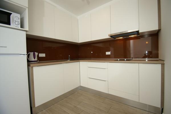 Ljubazni domaćini, apartman visoke kategorije, moderan, vrlo čist. Potpuna, dovoljna oprema. Blagi spust, blizina plaže i vrlo čisto more. Tiho i mirno naselje bez ulične buke. Toplo ga preporučujemo.