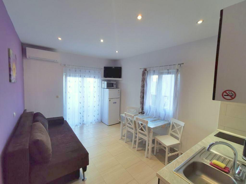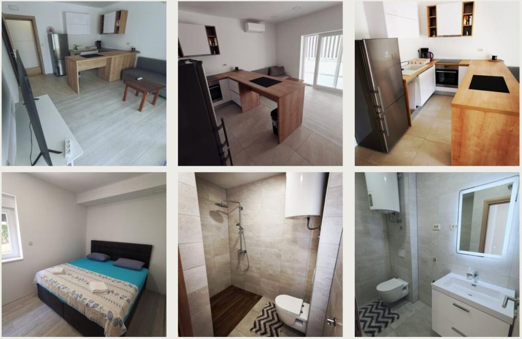 Lijepi apartmani s pogledom na more i pristupom bazenu na vrlo dobroj lokaciji, blizu trgovina, plaža i restorana. Ako tražite mali hrvatski grad s prekrasnim plažama, ovo je pravo mjesto za vas. Naš apartman imao je jedan klima uređaj i trebalo je neko vrijeme da se ohladi, ali bilo je podnošljivo. Više zdjelica žitarica za djecu i sušilo za kosu bili bi korisni. Vlasnik je na licu mjesta i uvijek je dostupan za pomoć.