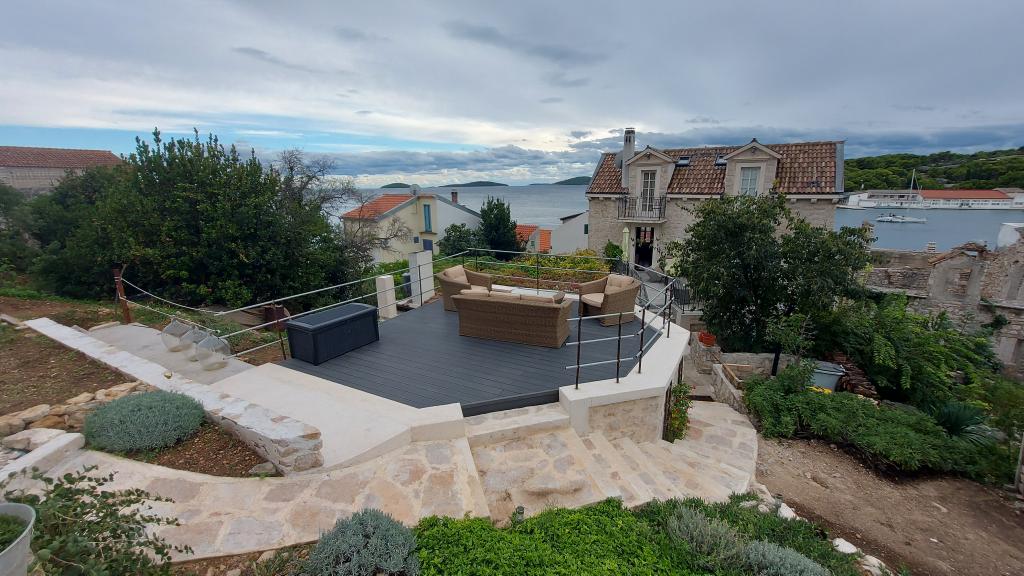 Na otoku bez automobila, u tihom dijelu mjesta, u staroj kamenoj autohtonoj dalmatinskoj kući, naći ćete apartmane Piazza Clara. Tu će vas osvojiti šarm proslosti, vijenac jedine preostale gusterne, kameni pragovi, stube, kovane ograde, rukohvati, drvene grede, podovi, pogled na more i dvadesetak otoka. Apartmani se sastoje od spavaće sobe i kupaone sa wc-om na katu i kuhinje, dnevne sobe i terase . Za korištenje imate vrt sa roštiljem, kutkom za druženje i terasom za sunčanje.
