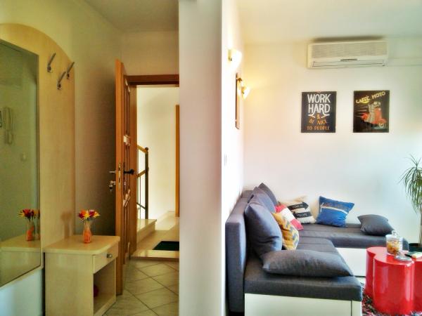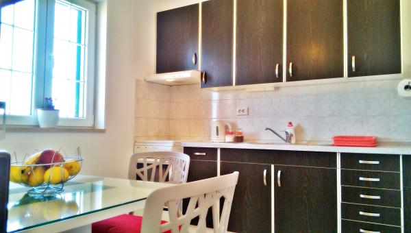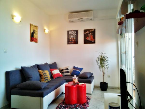 Apartmani se nalaze malo dalje od centra ali blizu mora. Potrebno vam je svega par minuta do plaže. Sa terasa se tako pruža predivan pogled na uvalu zaštićenu od vjetra. Apartmani su opremljeni sa svime što vam je potrebno da vam odmor bude ugodan. Centar je udaljen 10 minuta hoda a najbliži restoran nekoliko minuta.