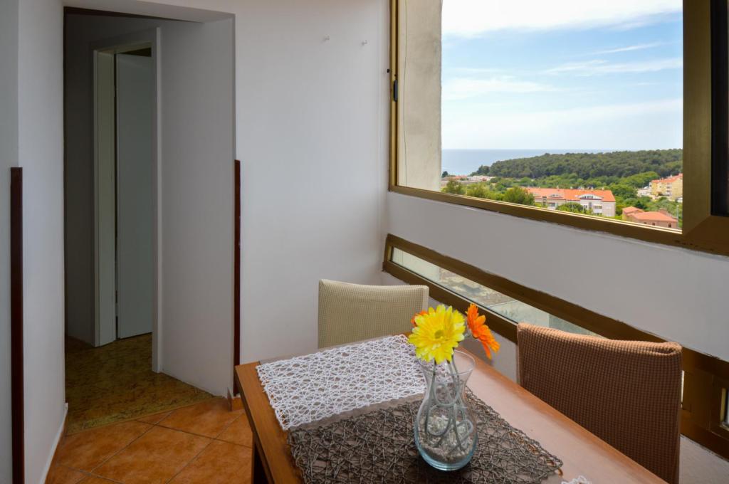 Lijep, potpuno opremljen apartman s pogledom na more. Apartman se nalazi u mirnijem djelu grada (Veruda) u neposrednoj blizini mora i najljepših pulskih plaža (5 minuta hoda), a opet dovoljno blizu grada i svih bitnih znamenitosti. U blizini apartmana su svi bitni sadržaji: veliki Shopping centar, manje trgovine, tržnica, pošta, sportski centar s teretanom, saunom i bazenom, teniski tereni.. Do mora i plaže stiže se prečicom pješke za 5 minuta, a ako želite možete se provozati do Verudele ili Stoje koje krase prelijepe plaže (sve to može se obići i šetnjom jer je lokacija takva da je okružena plažama i obalom) Apartman se nalazi na 4. katu zgrade (ima lift) te pruža prekrasan pogled prema moru. Uz zgradu postoje parkirališta na kojima se moze parkirati vozilo bez naplate. Apartman je potpuno opremljen i nema dodatnih plaćanja. U slućaju da je navedeni apartman zauzet ili trazite nesto jeftinije na drugoj lokaciji u blizni Arene mozemo Vam i to ponuditi sve informacije na upit.