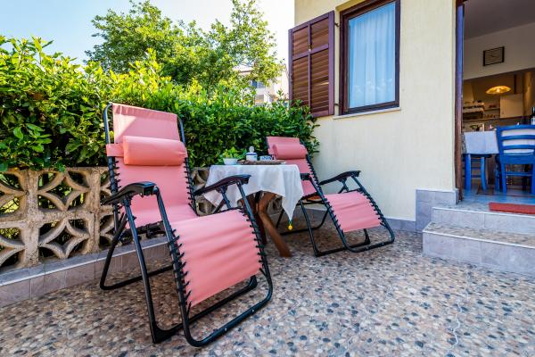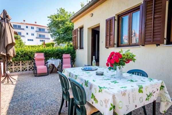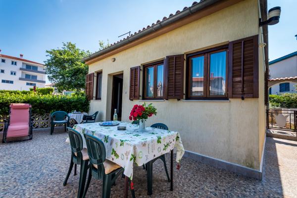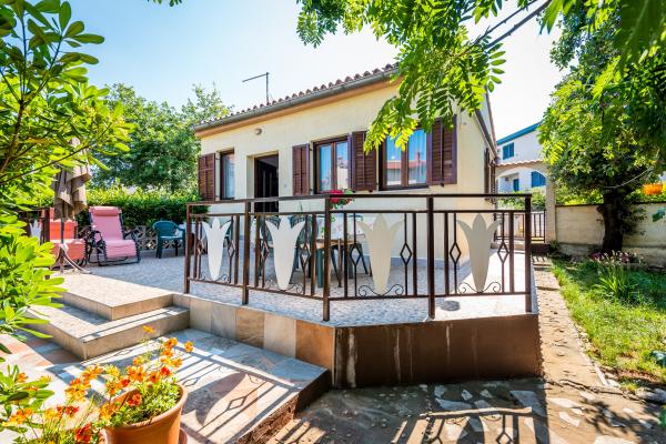 Ova simpatična kućica za odmor udobno se smjestila u hladovinu šumarka u naselju Pješčana Uvala, prepoznatljivom po modernoj arhitekturi koja mu poklanja osobit stil. Zgodna terasa je idealna za odmor uz kavicu i pogled na park. Prelijepa okolica je idealna za lagodne šetnje, a uvala sa krasnim šljunčanim plažama poziva na nove doživljaje i uživanje. Duž promenade su se nanizali i brojni restorani i dućani koji mame svojom šarolikom ponudom. Kućica je smještena samo 50 metara od mora u mirnoj ulici bez prometa. Cvrkut ptica uz jutarnje buđenje je doživljaj koji ne smijete propustiti.