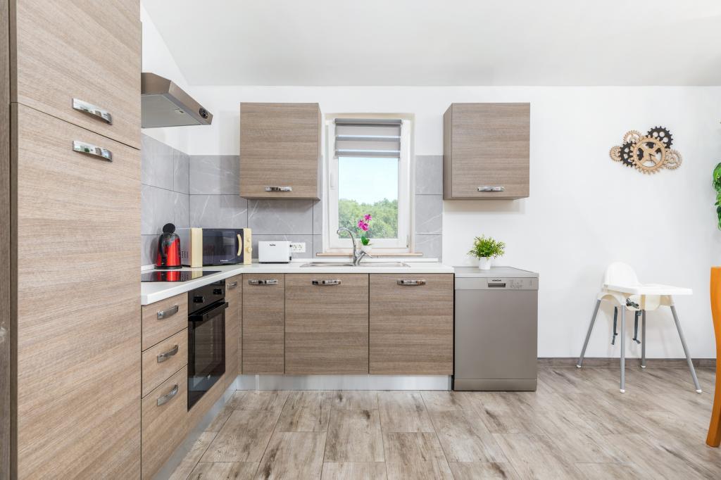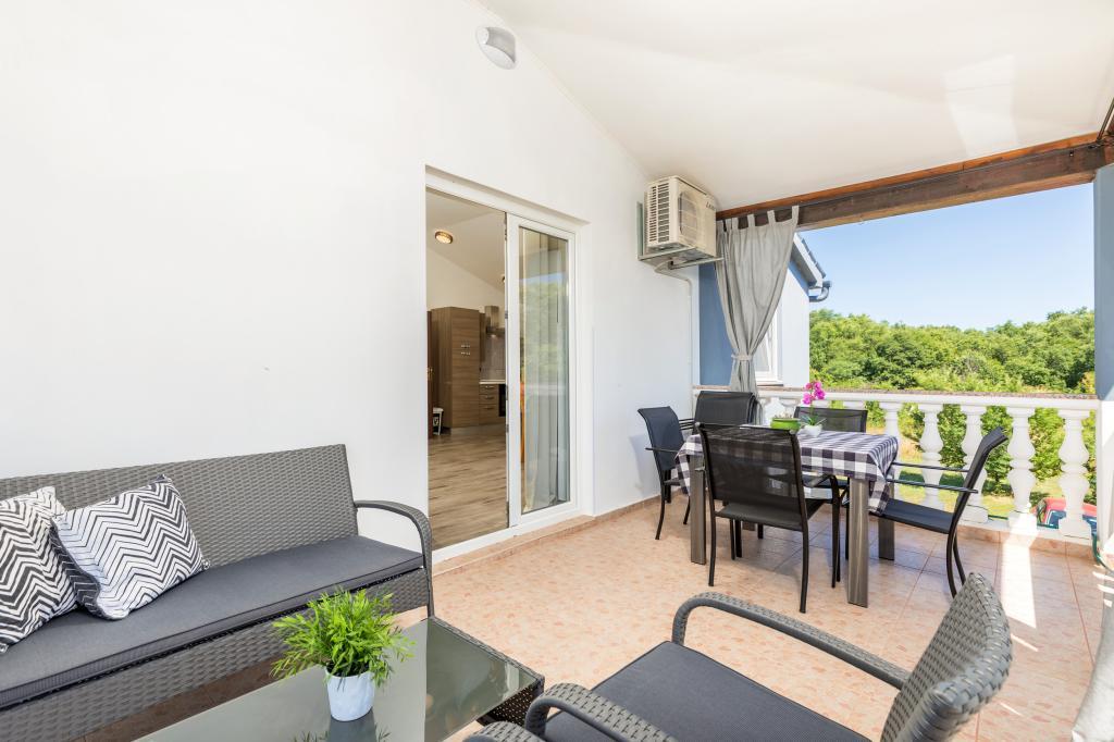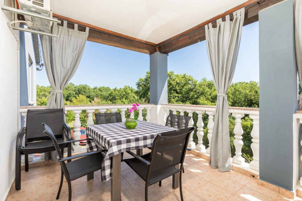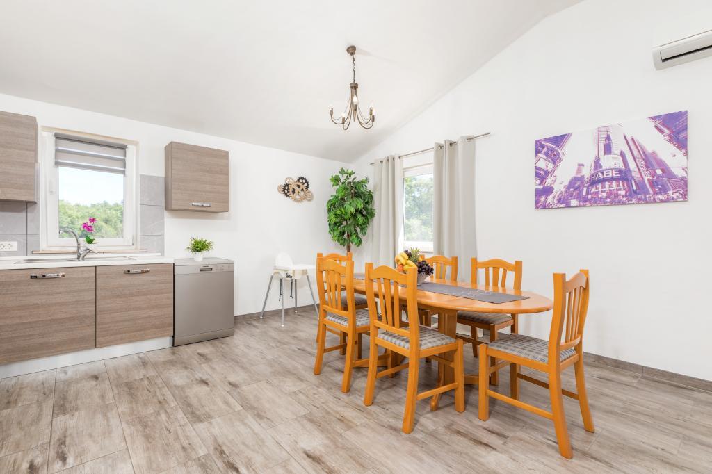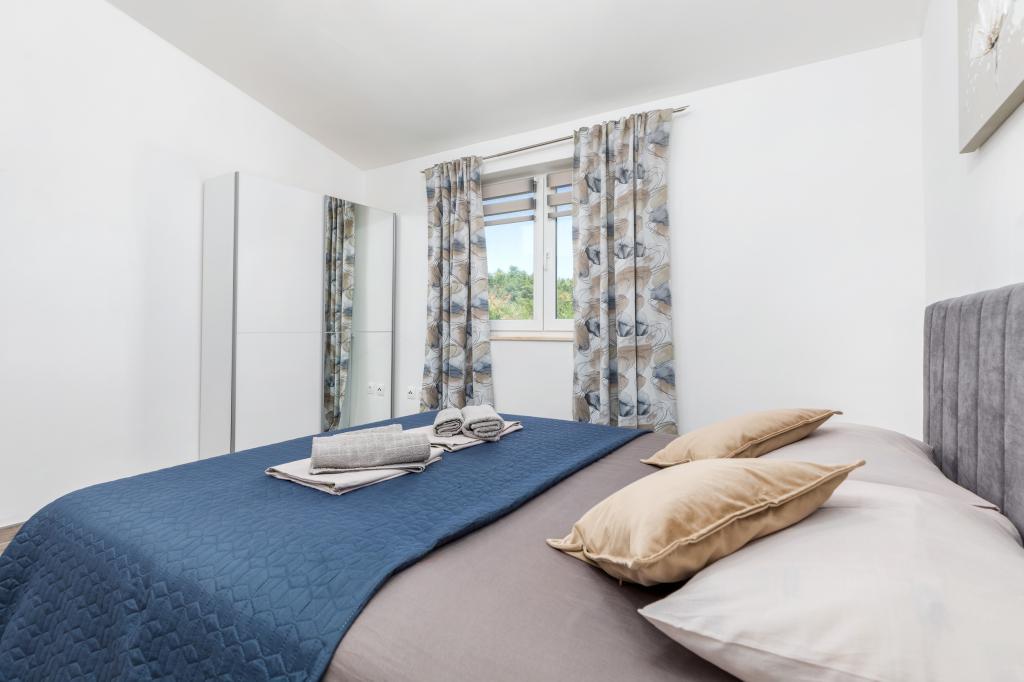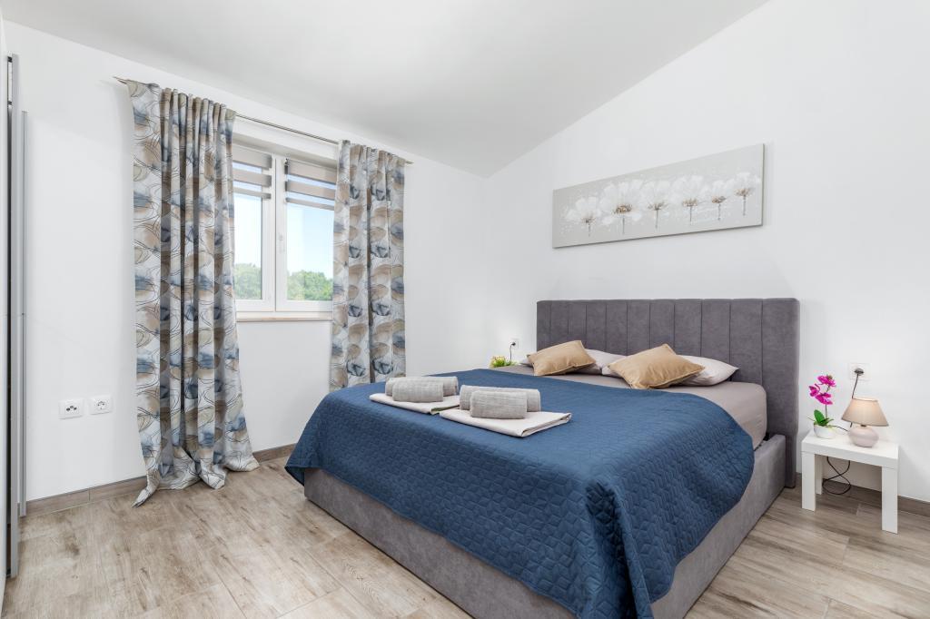 Opustite se u novoizgrađenom objektu svega 8km od centra Pule i 10 km od prve plaže. Mirne okoline na rubu šume sa buđenjem uz cvrkut ptica. Stan na katu raspolaže sa 3 spavaće sobe, kupaonom opremljenom perilicom i tušem, kuhinjom sa perilicom te blagavaonicom i dnevnim boravkom. Natkrivenom terasom sa stolom za ručavanje i lounge namještajem, te u prizemlju na služenje roštilj sa pripadajućim inventarom i velikom okućnicom. Wi-Fi, dječji krevetić, hranilica, besplatan parking. Blizina igrališta i supermarketa.