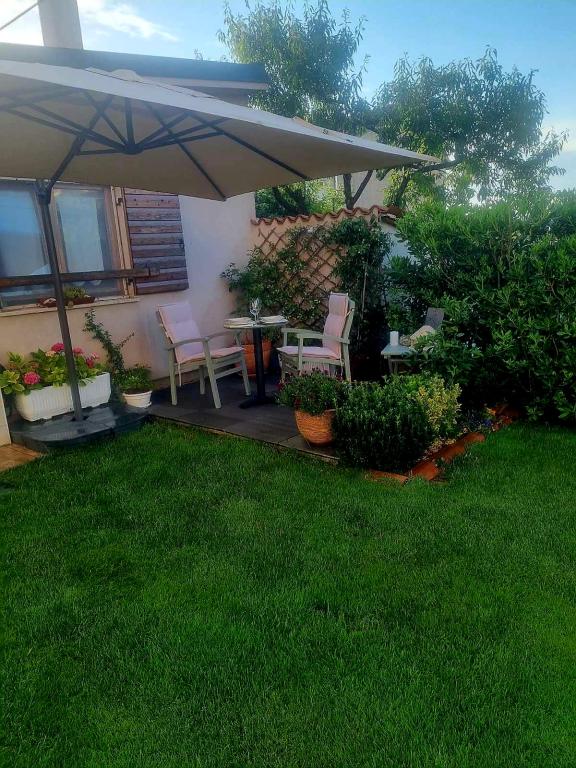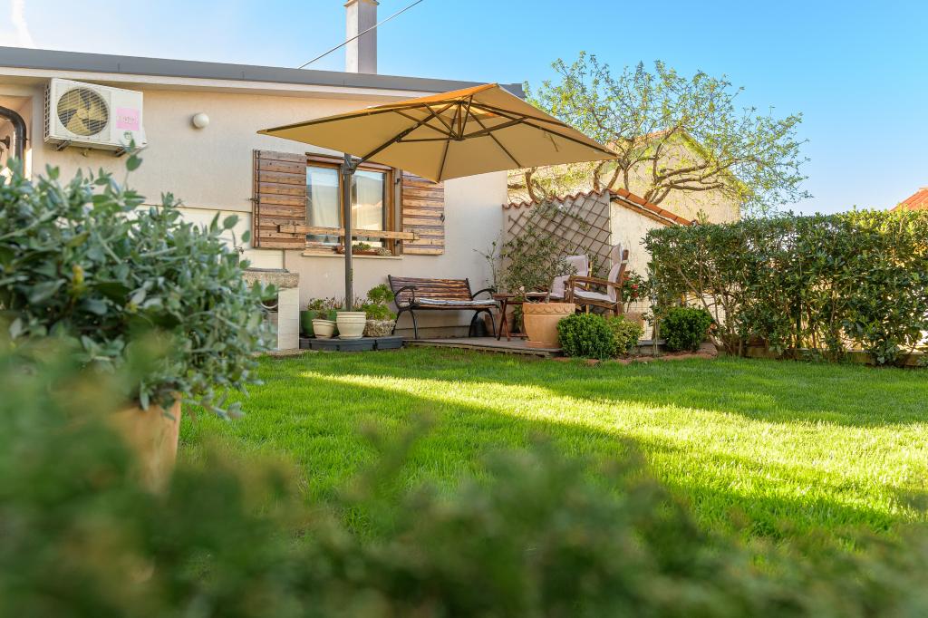 Apartman je nov, potpuno opremljen...perilica suđa, pećnica, aparat, za kavu, toster, kuhalo, perilica i sušilica rublja, set za jelo... Svaki detalj u apartmanu uređen je pažljivo i sa puno ljubavi, da bi vam pružio maksimalnu udobnost i omogućio uživanje u vašem godišnjem odmoru. U sklopu apartmana imate prekrasnu zelenu terasu, okruženu zelenom živicom koja vam pruža privatnost i mir. Prva jutarnja kava bit će puno boljeg okusa na zelenoj travi i mirnoj oazi uz pjev ptičica i cvrkut zrikavaca. Kad ogladnite imate i veliki novi roštilj, za pripremu ukusnih jela. Automobil vam je siguran na besplatnom parkiralištu u sklopu kuće. Apartman je smješten u mirnom dijelu centra grada, okružen obiteljskim kućama. Sve znamenitosti grada Pule kao i shopping centri, ljekarna, bolnica, restorani, kafići su udaljeni od 100 do 900m i sve možete obići lqganom šetnjicom, bez potrebe korištenja automobila.