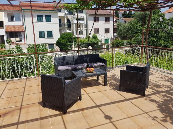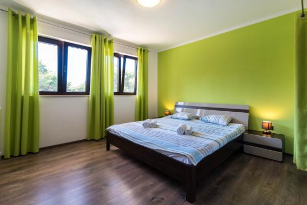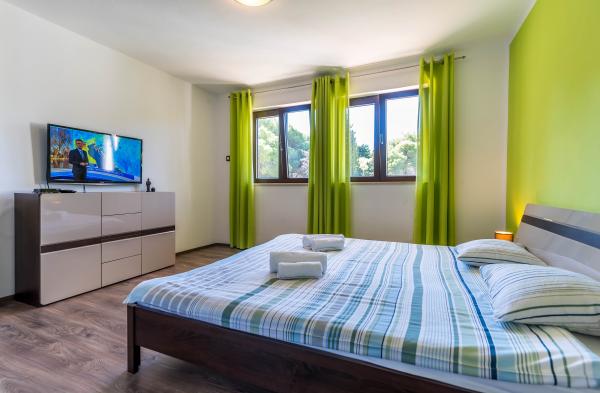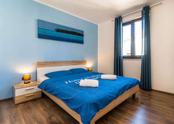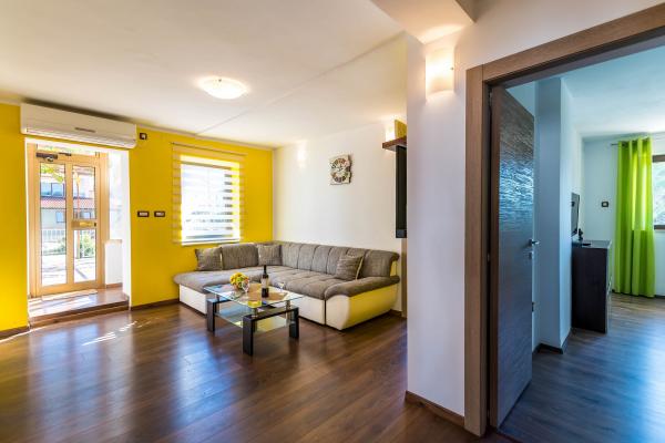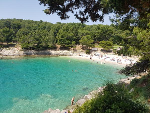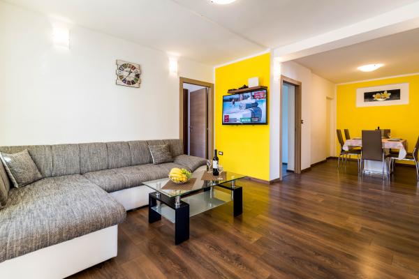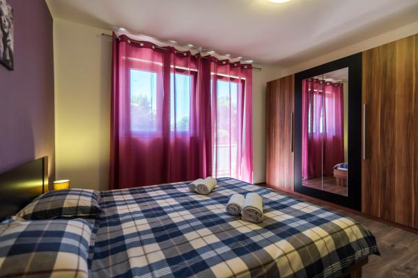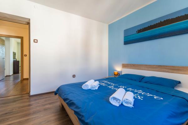 Kompletno opremljen apartman za 6 osoba sa tri spavaće sobe, velikim dnevnim boravkom, kuhinjom i kupatilom te s velikom terasom svega 100 metar od jedne od najljepših plaža u Puli, ispod apartmana nalazi se šetalište, staza za trčanje, teniski tereni i finess na otvorenom