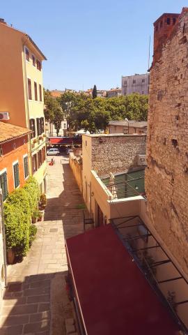 Apartman smjesten u samom centru Pule, blizu rimskih spomenika i Arene, mnoštvo malih restorana, tržnice, itd. Blizu je autobus koji yozi do mnogo okolnih plaža, kao i luka iz koje idu brodovi na izlete do Brijuna i Limskog kanala. Stan je dobro opremljen, sa velikom kuhinjom, perilicom i posuđem, klimom, brzim bežičnim internetom, satelitskom televizijom, sa svije spavaće sobe, kupaonicom i balkonom.