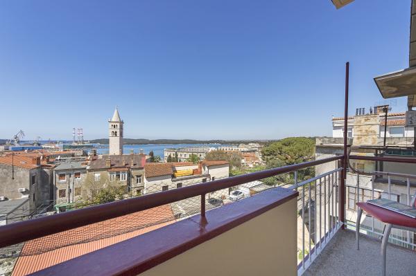 Apartman se nalazi u mirnoj ulici, udaljen je 1 minutu hoda do Amfiteatra i 5 minuta hoda do samog centra, gdje usput možete razgledati Dvojna vrata, Arheološki muzej, Zlatna vrata, Augustov hram, gradsku tržnicu iz Austrougarskog doba i sve to možete obaviti bez korištenja prijevoza. Apartman jei na 4 katu sa prekrasnim pogledom na more, amfiteatar, kaštel, svjetleće dizalice uglavnom iz stana pruža se spektakularan pogled na čitavu Pulu. Apartman je na novo uređen, nalazi se u stambenoj zgradi sa dvorištem koji ima parkirno mjesto. Pogodan je za 2 osobe, sastoji se od jedne spavaće sobe sa bračnim krevetom za dvije osobe, dnevnim boravkom, kuhinju, TV, klimu, wi-fi internet, kupaonica sa tušem, perilica rublja. Vlasnik ne živi u kući.