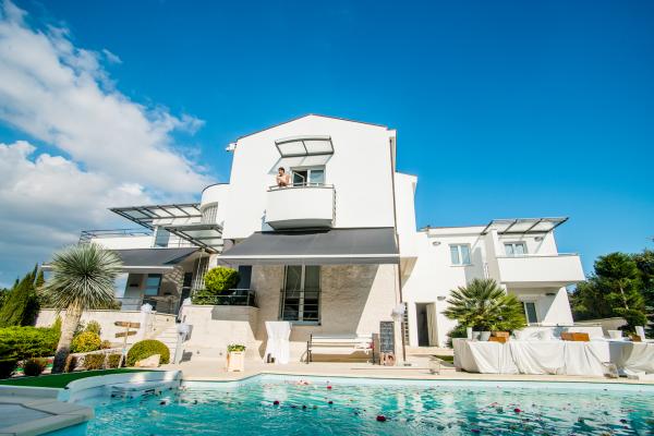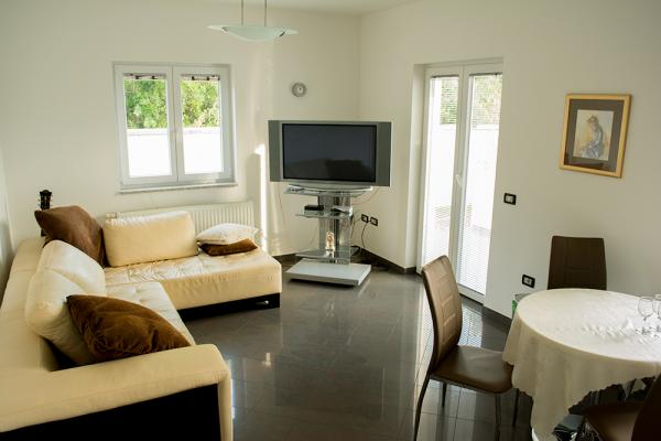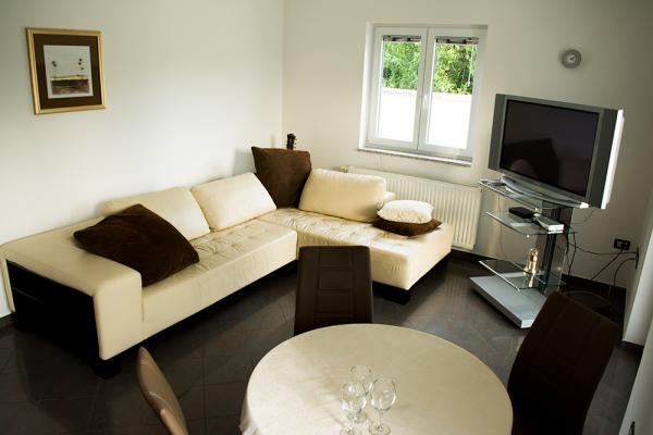 Apartmani se nalaze u Pješčanoj Uvali 5min hoda od mora. U sklopu apartmana je i privatan bazen sa prelijepim vrtom. Svaki apartman ima posebnu spavaću sobu, dvevni sa kuhinjom, kupatilo, balkon (terasicu). Balkoni imjau pogled na bazen i more.