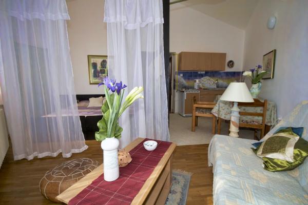 Funkcionalno i potpuno opremljeni apartmani s umjetničkim dekorom. Idealni za parove ili male obitelji. Blizina plaže 5 minuta pješice. Rezidencijalna četvrt Pule. Pekara, trgovina, marina, restorani u neposrednoj blizini.