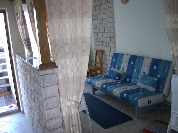 Kompletno i suvremeno opremljena 3 apartmana u kuci za odmor Dara se nalaze na idealnoj poziciji u mirnoj sporednoj ulici u Puli, samo 1, 7 km od plaze Verudela, ali i blizu centra grada Pula. Do plaze Verudela je udaljenost samo 3-4 min sa autom. Uz nekoliko plaza poluotok Verudela nudi i razne sportske sadrzaje kao tenis, kosarka, stolni-tenis, bazeni. Do centra grada Pula voze gradski autobusi u intervalima od 10min, a autobuska stanica je udaljena samo 200m od apartmana. Apartmani su uredni i cisti, a balkon uz svaki apartman nudi mogucnost uzivanja u dorucku ili casi vina. Svaki apartman ima svoje parkirno mjesto i odvojene ulaze. Dvosoban apartman sa spavacom sobom, kompletno opremljenom kuhinjom sa kaucem na razvlacenje za 2 osobe je idealan za max. 4 osobe. Pekara, restoran i trgovina se nalaze u neposrednoj blizini.